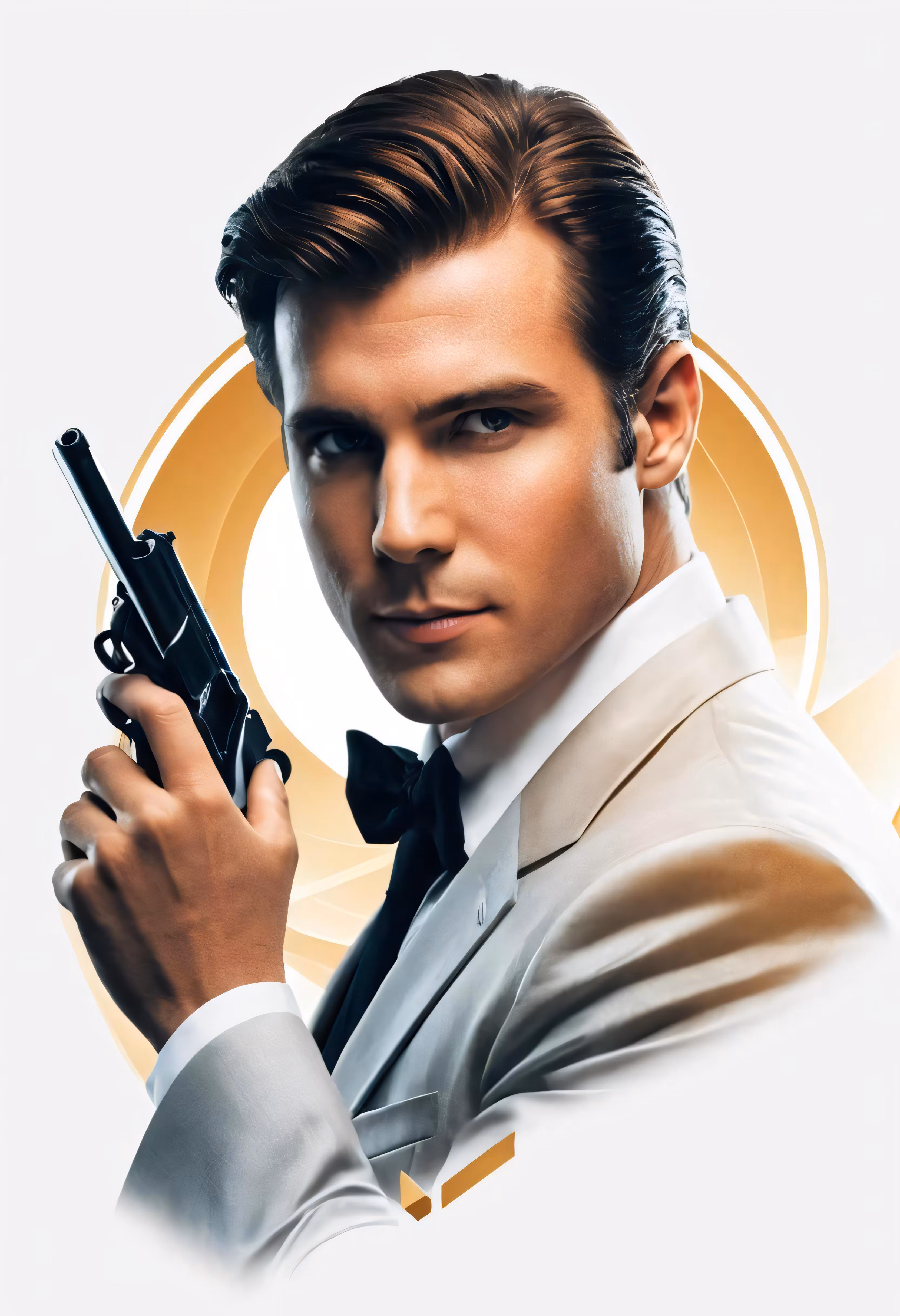 High resolution picture, free to use, a person wearing a suit holding a gun
