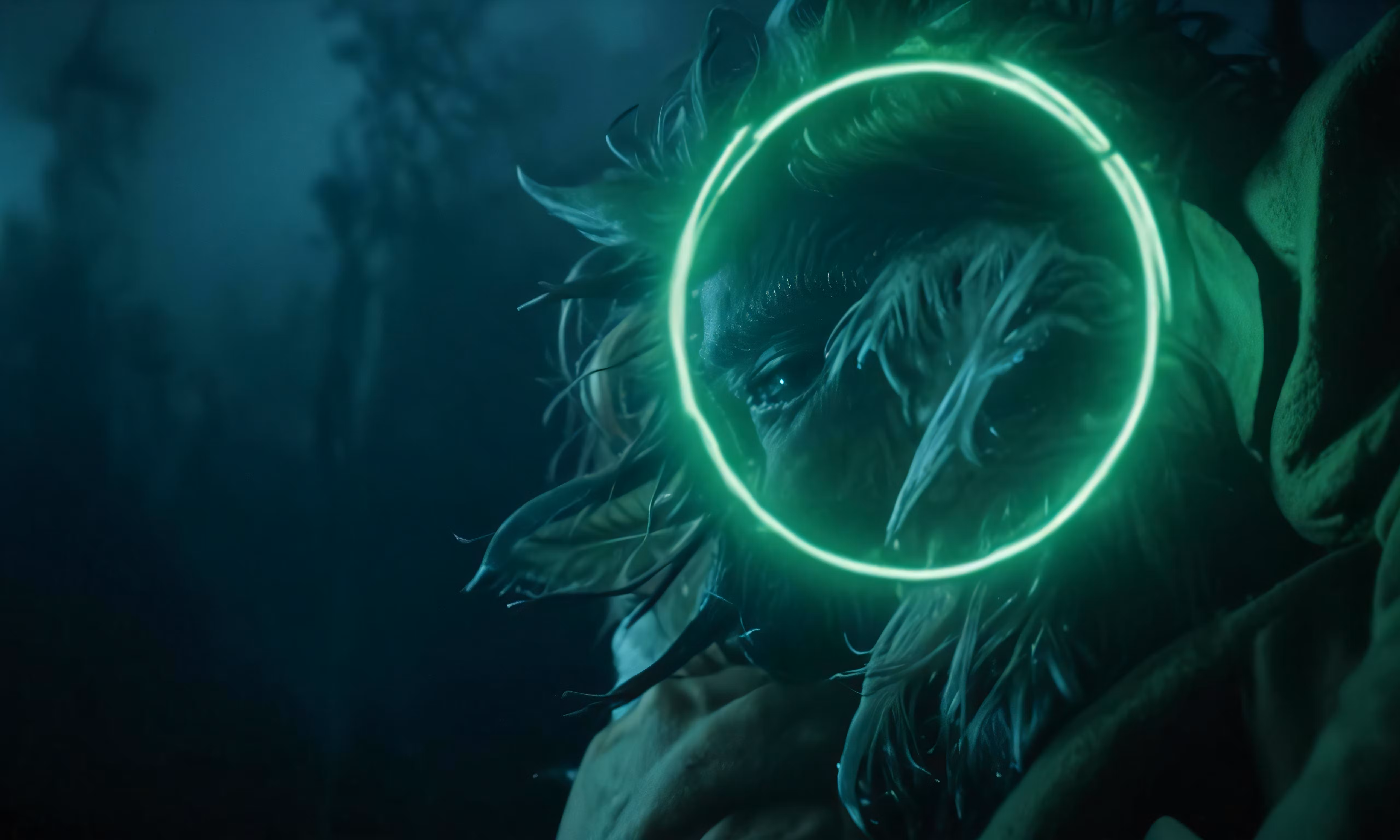 High resolution picture, free to use, a person with a glowing ring around their face