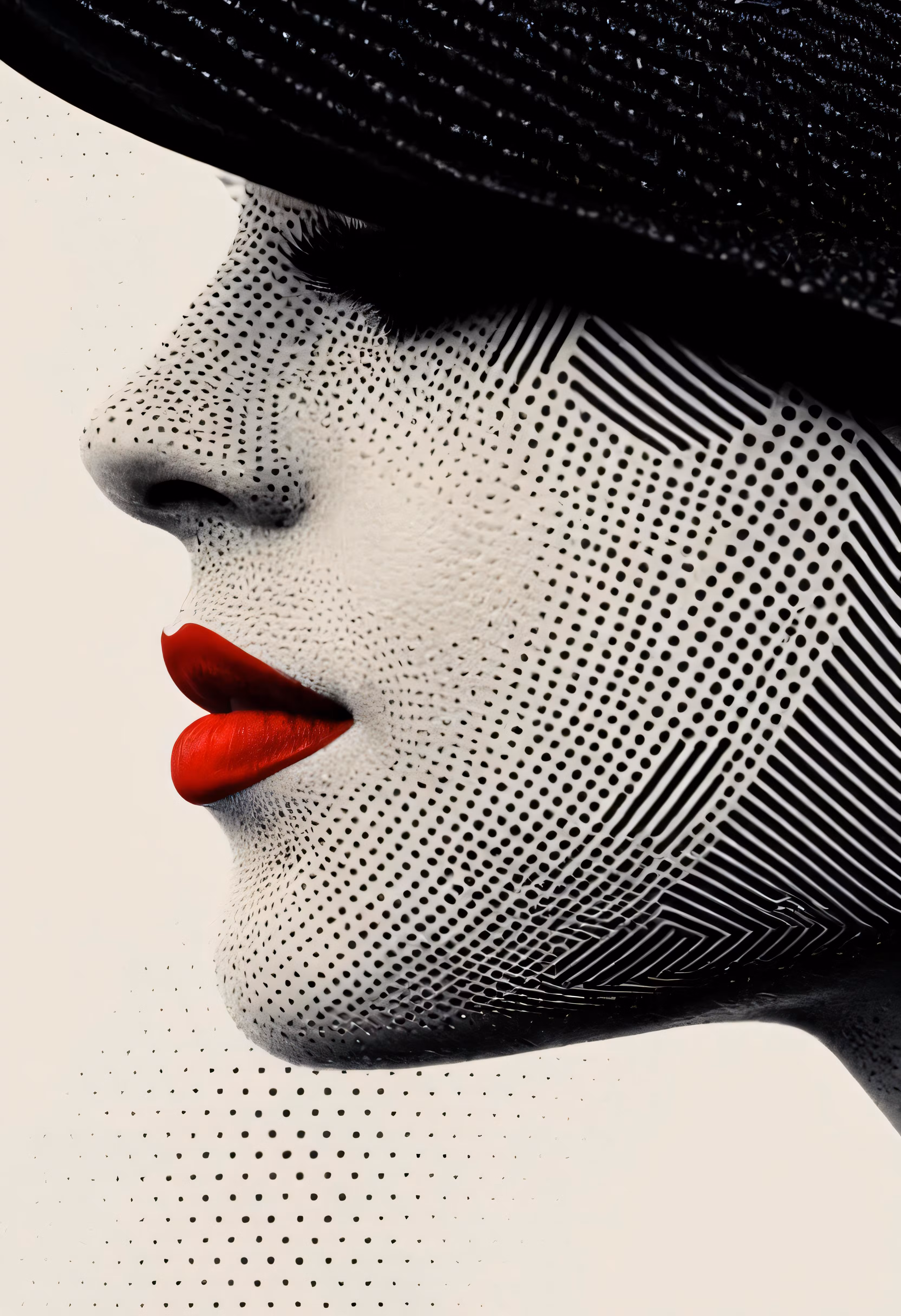 High resolution picture, free to use, a person with a hat and red lipstick