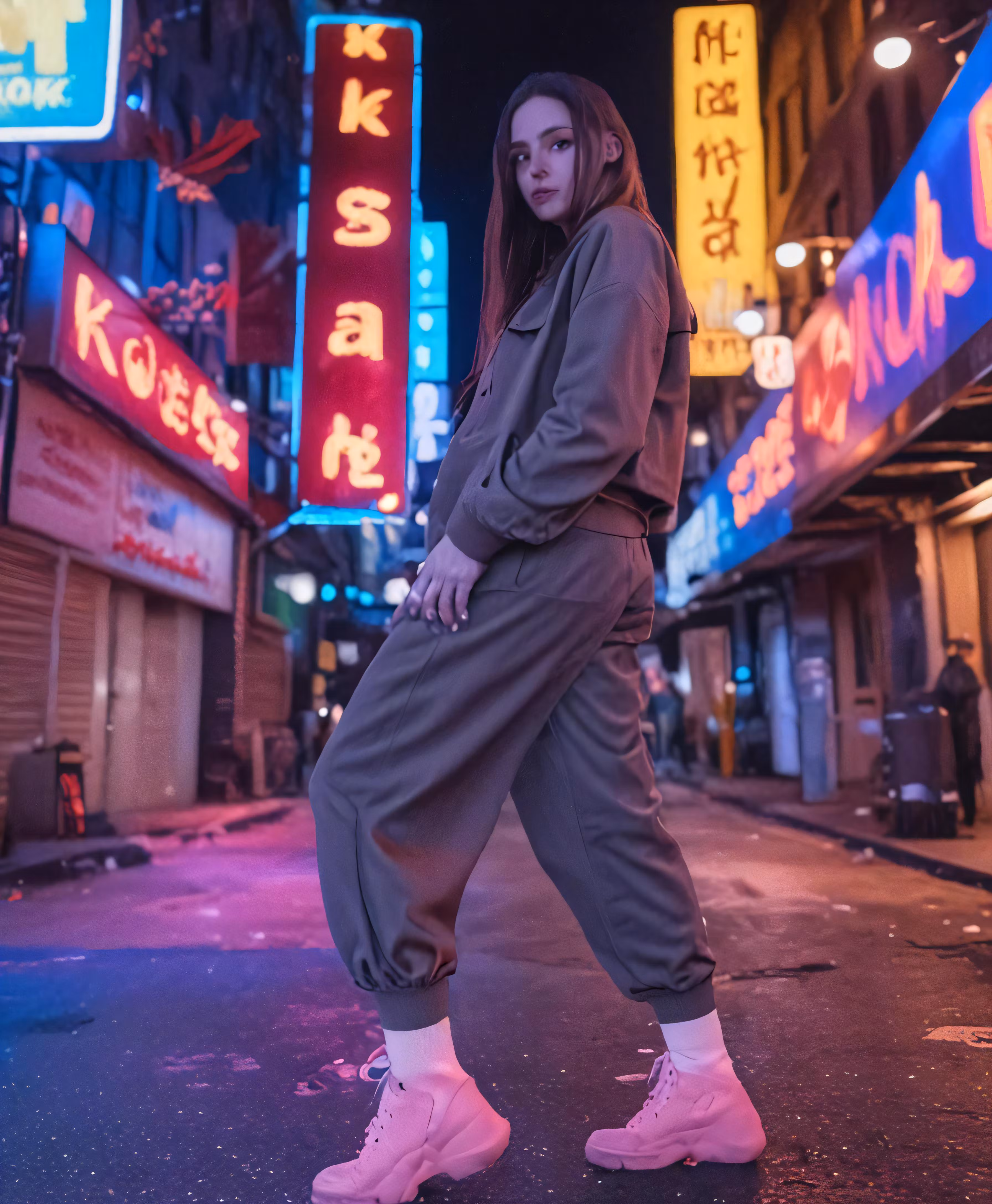 High resolution picture, free to use, a person with long hair wearing shoes standing in a street
