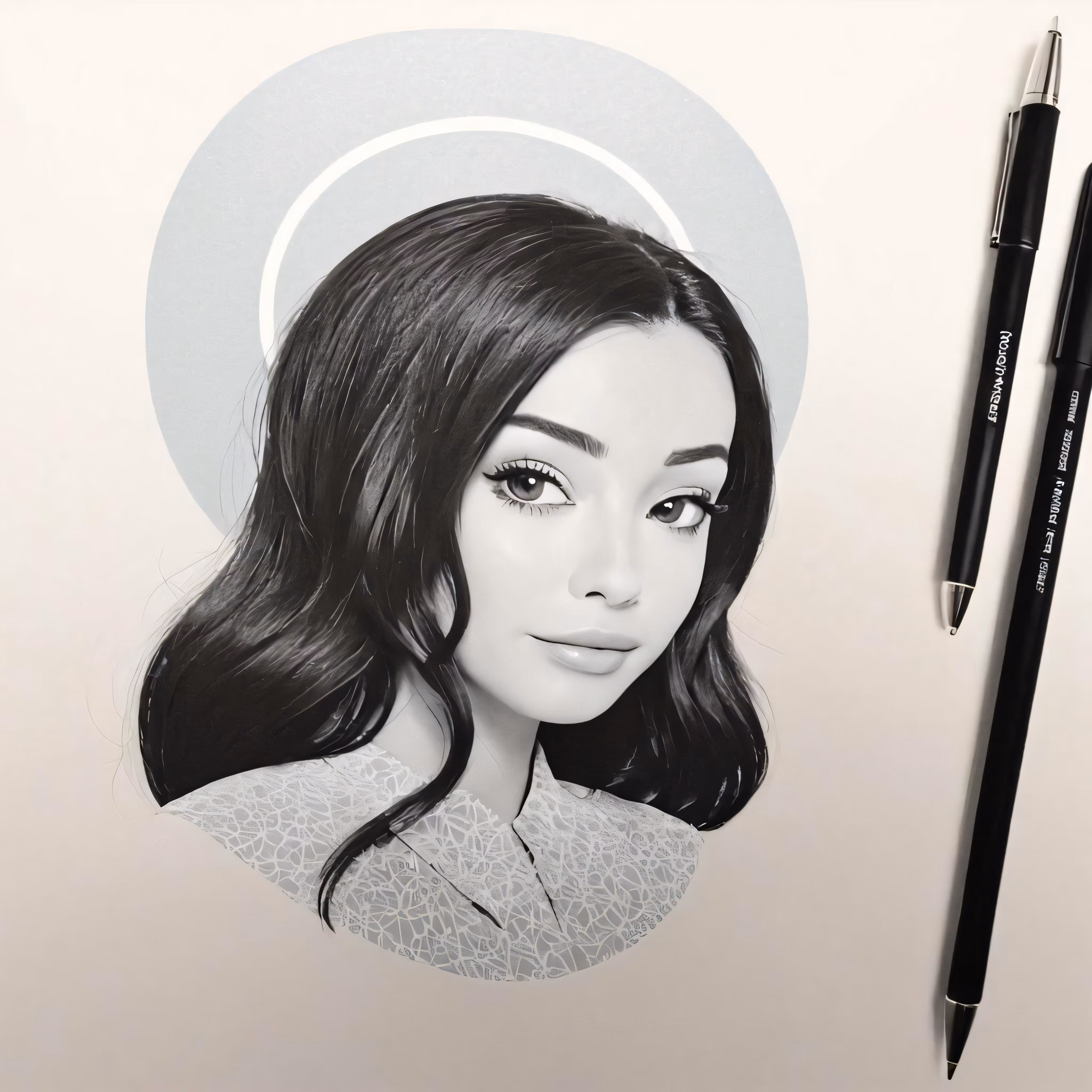 High resolution picture, free to use, a photo of a beautiful woman is drawn on a notebook