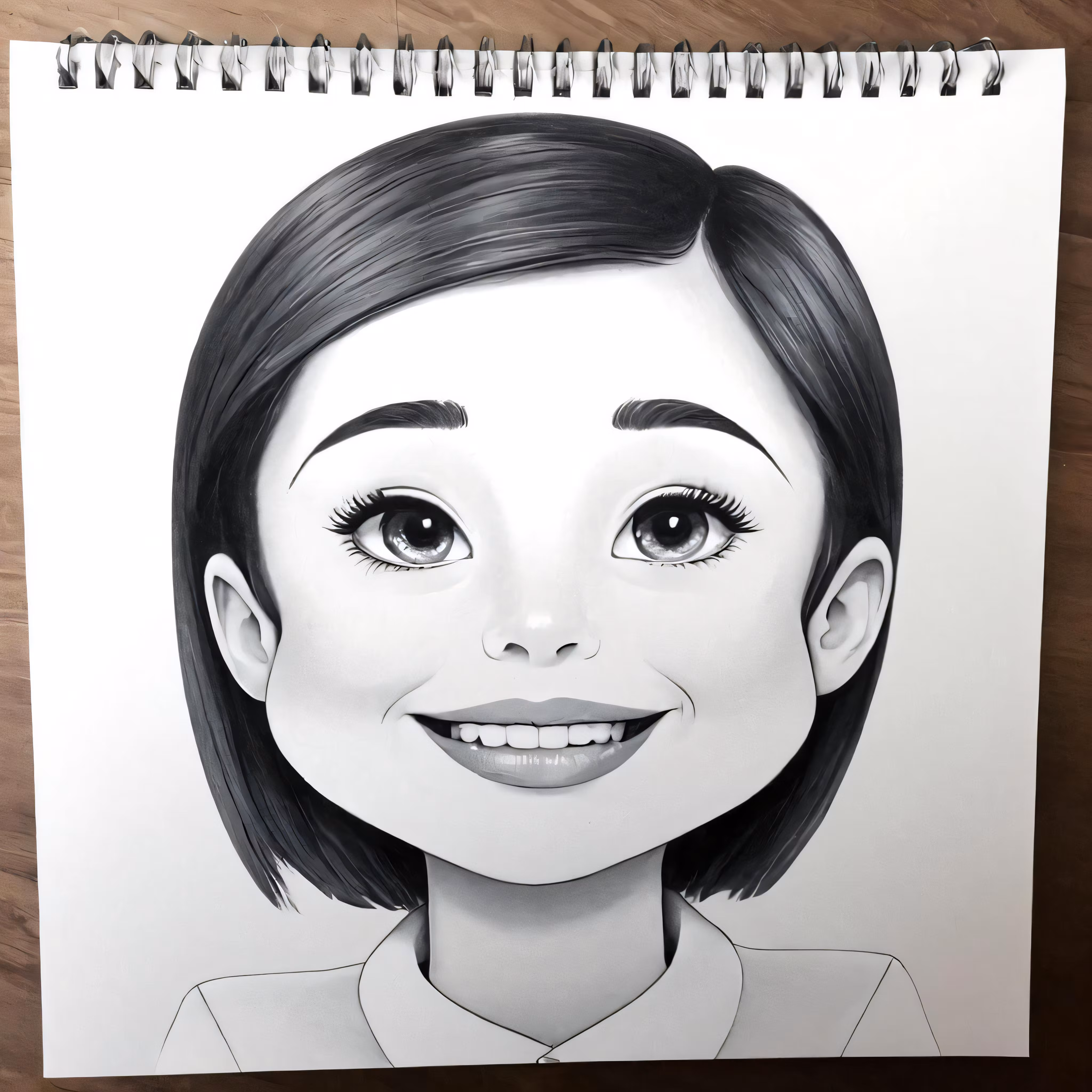 High resolution picture, free to use, a photo of a girl with black hair and bangs drawn in pencil