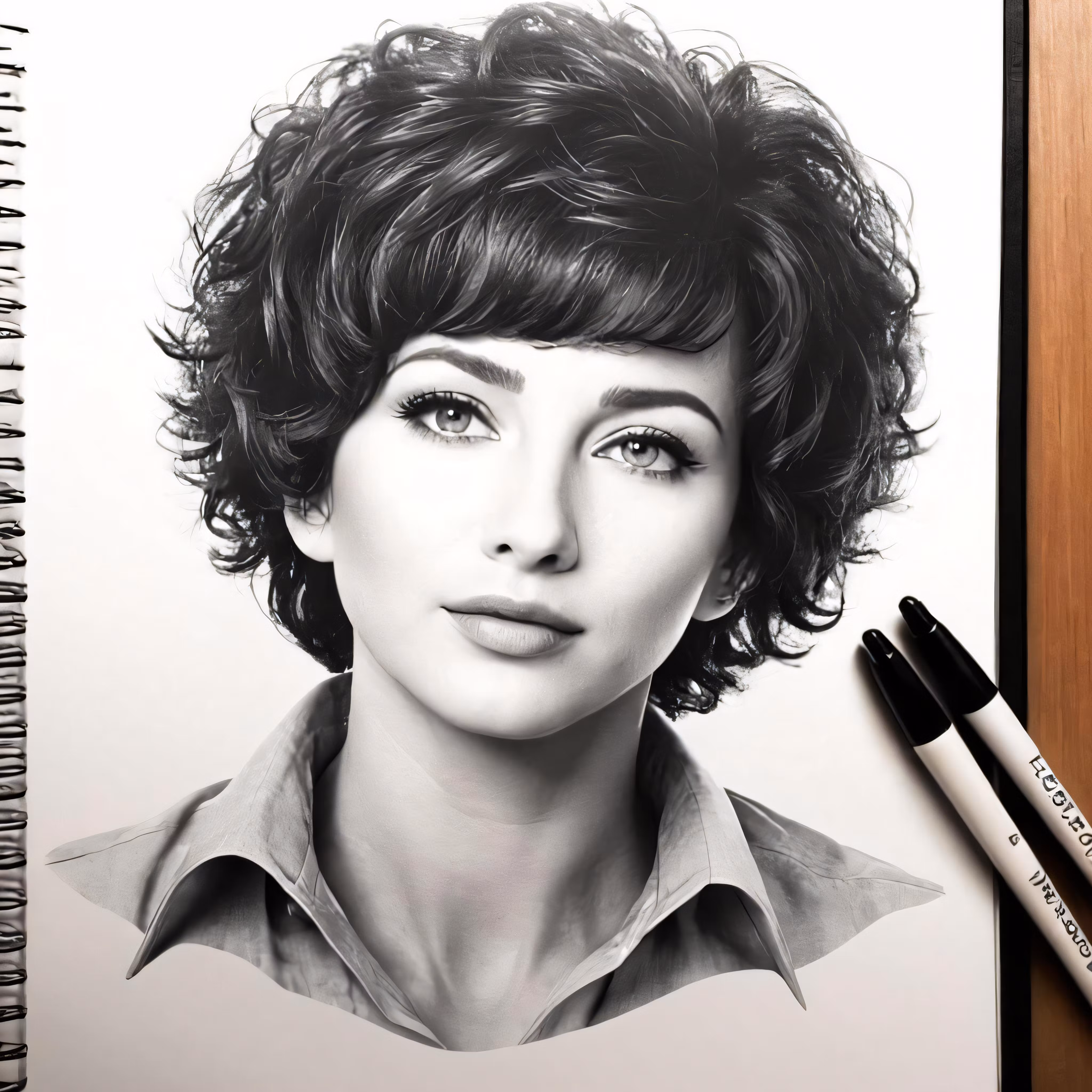 High resolution picture, free to use, a photo of a girl with long hair is drawn in graph pencil