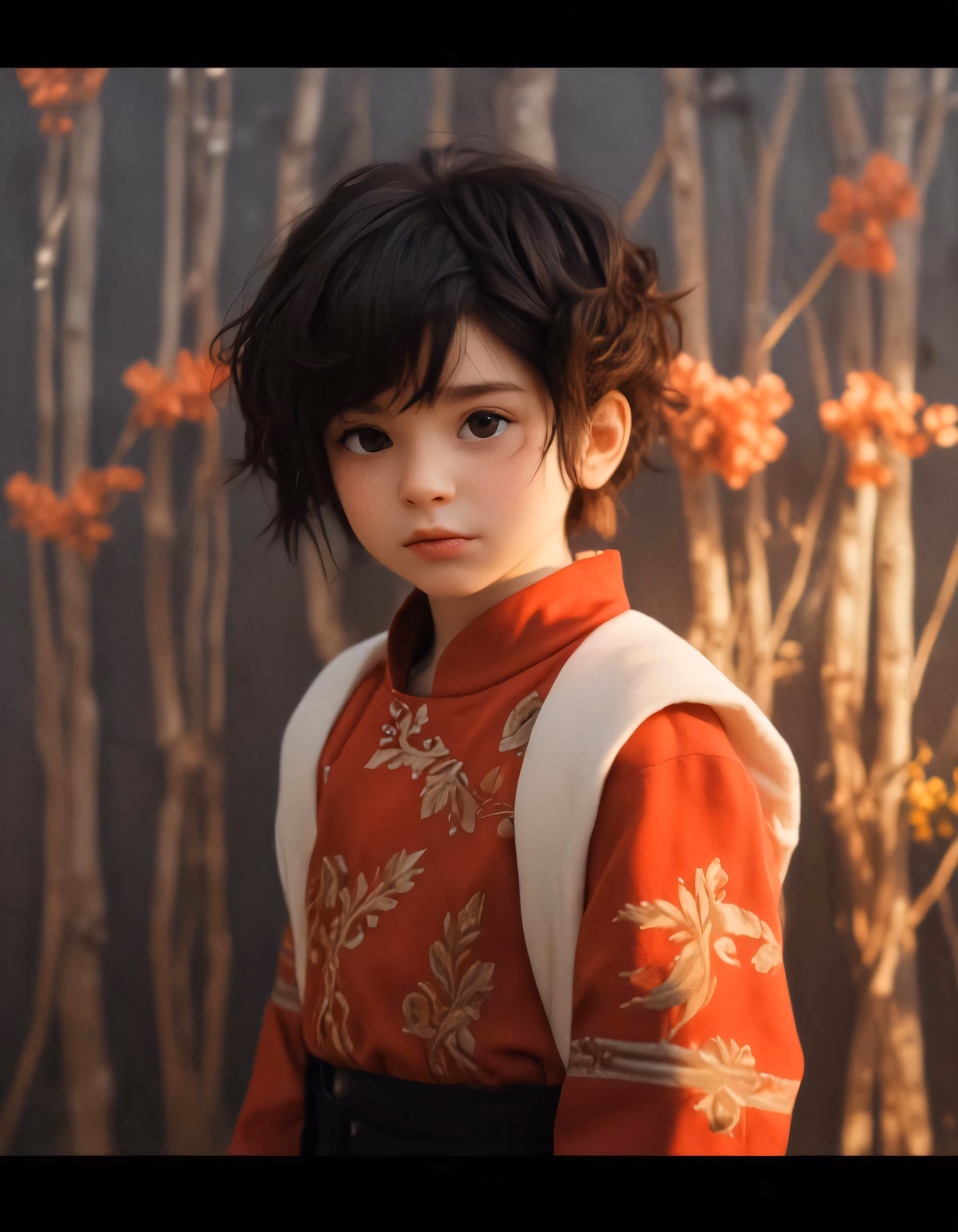 High resolution picture, free to use, a photo of a woman in an asian dress in front of trees