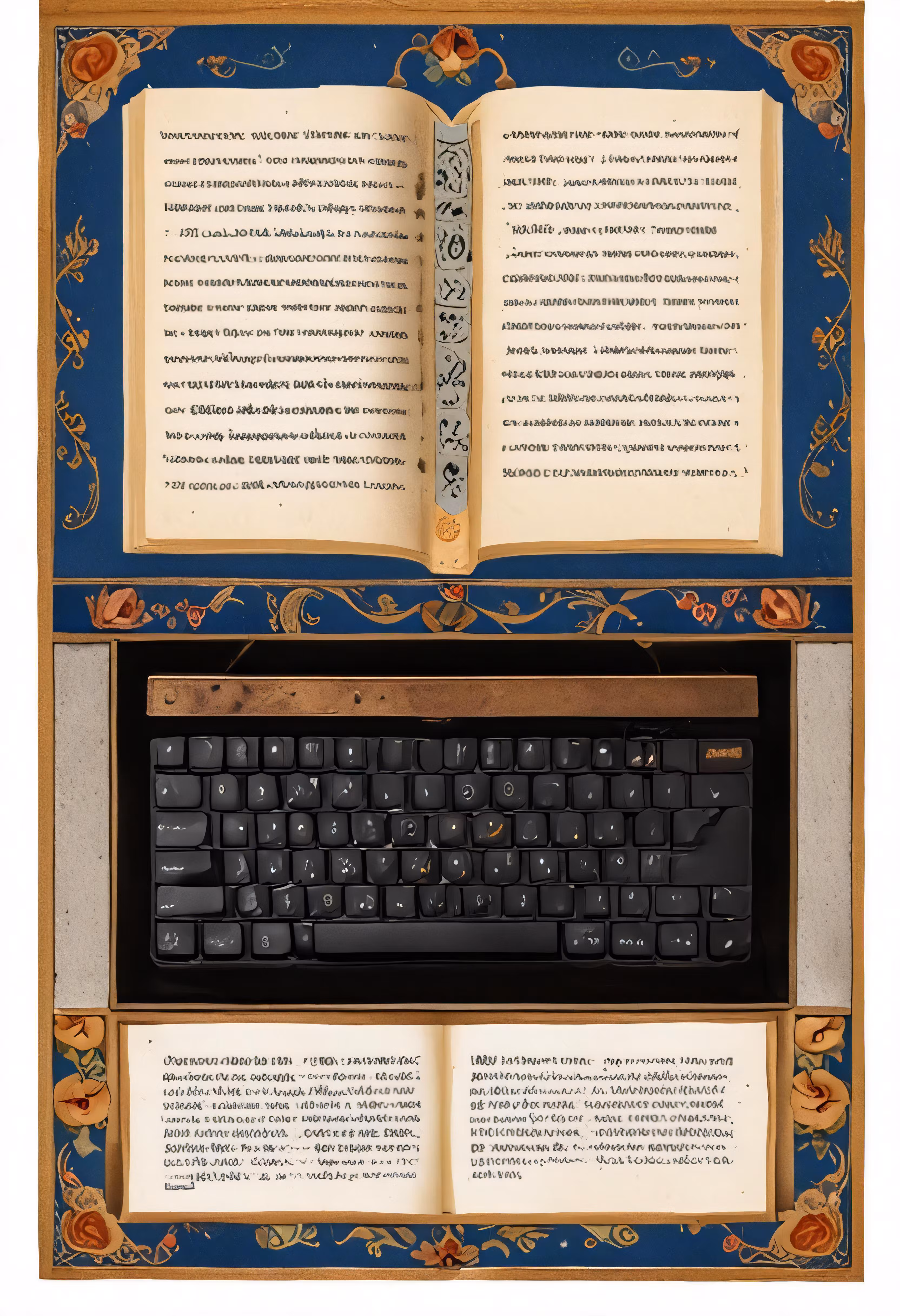 High resolution picture, free to use, a photo of an open book next to a keyboard