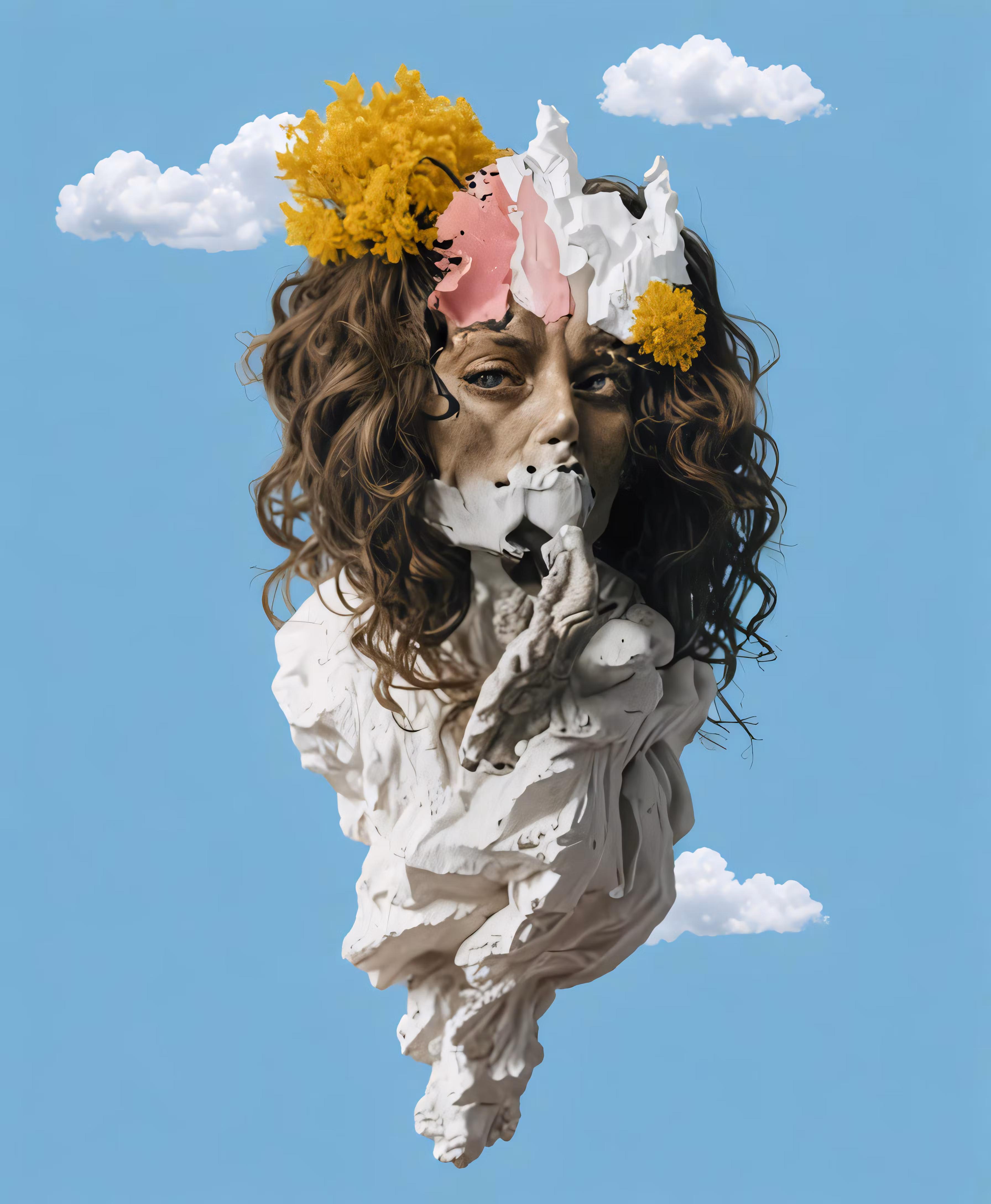 High resolution picture, free to use, a photo that is collaged with white and blue clouds