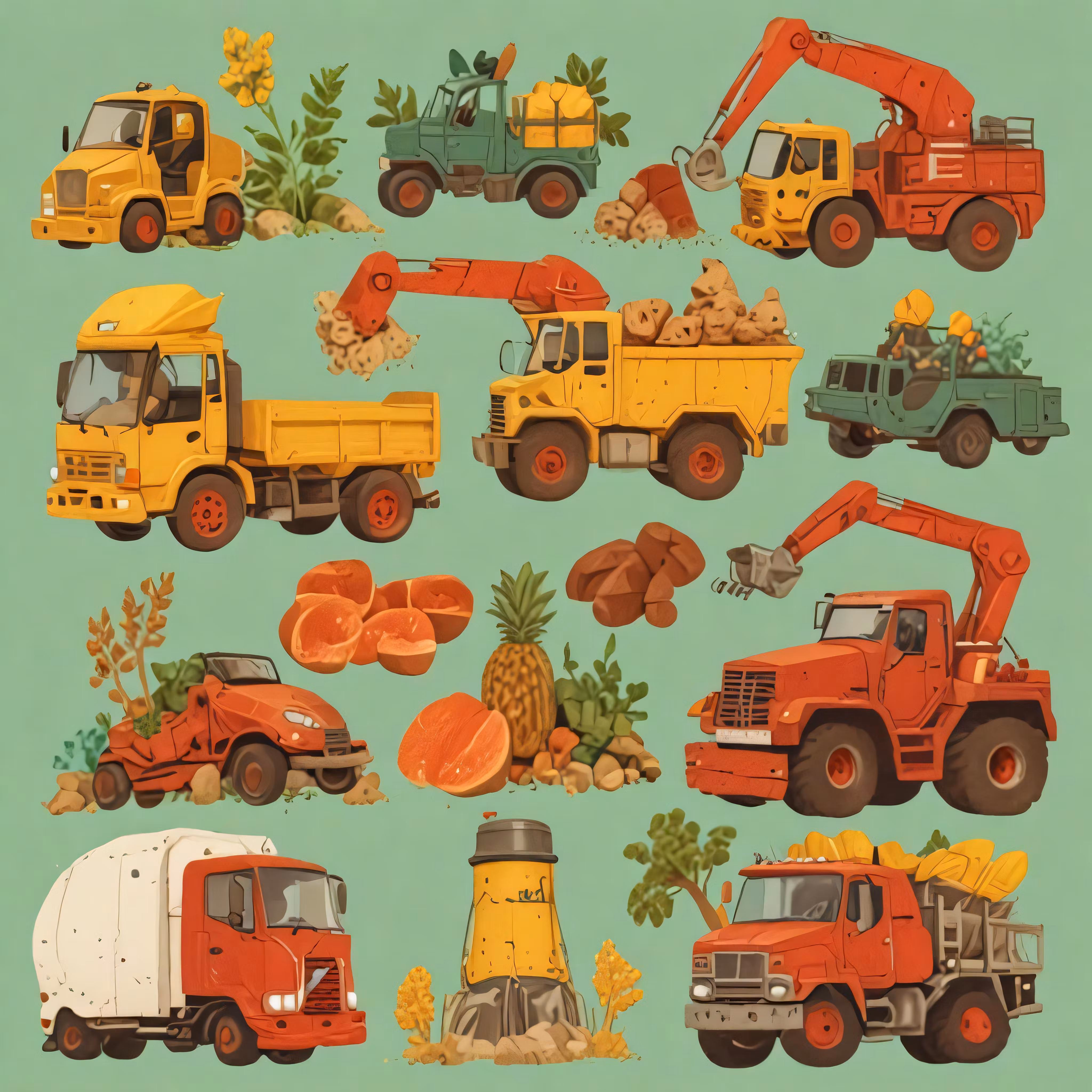 High resolution picture, free to use, a picture of a large set of garbage trucks