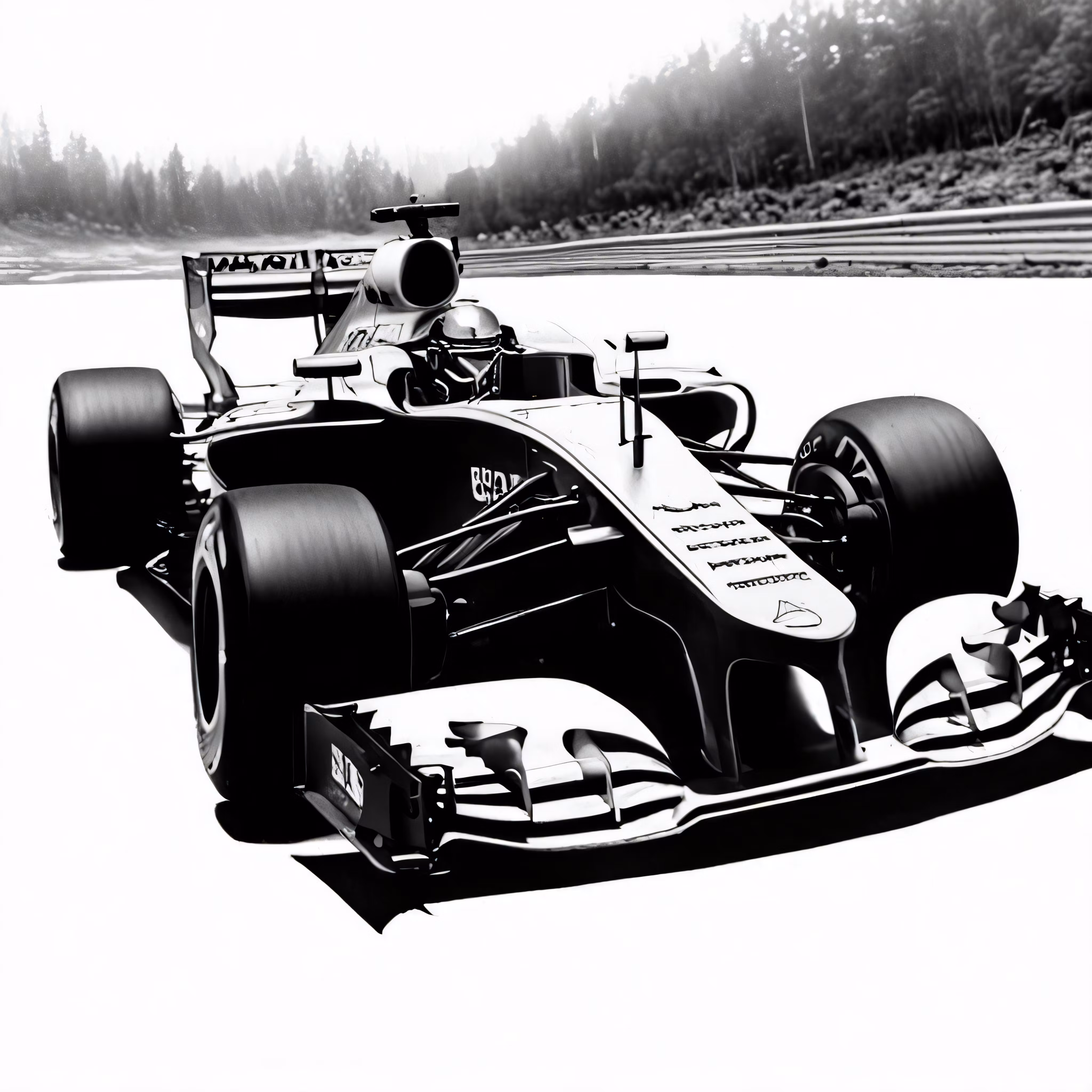 High resolution picture, free to use, a picture of a mercedes racing car, in black and white