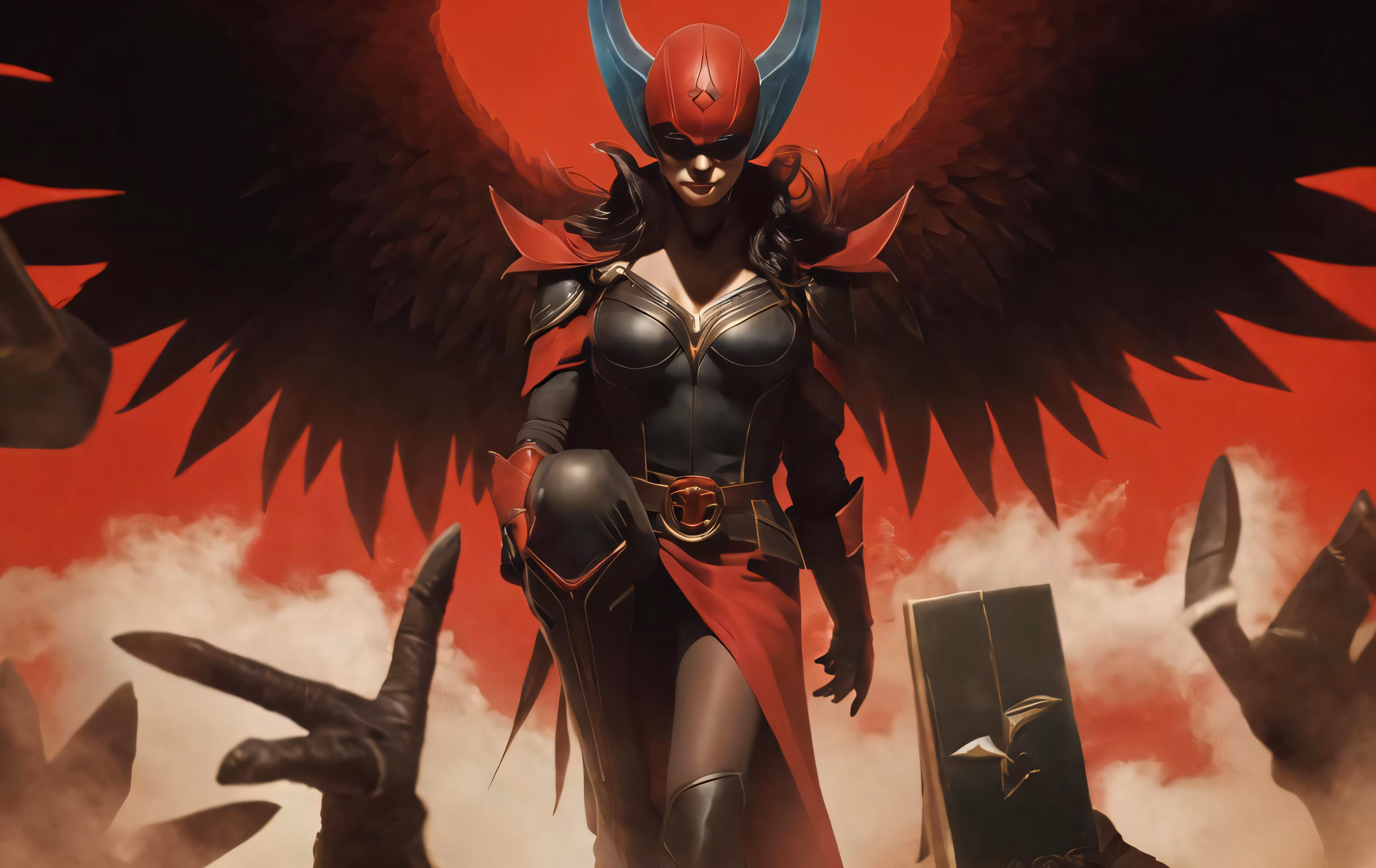 High resolution picture, free to use, a picture of an angel with huge black wings