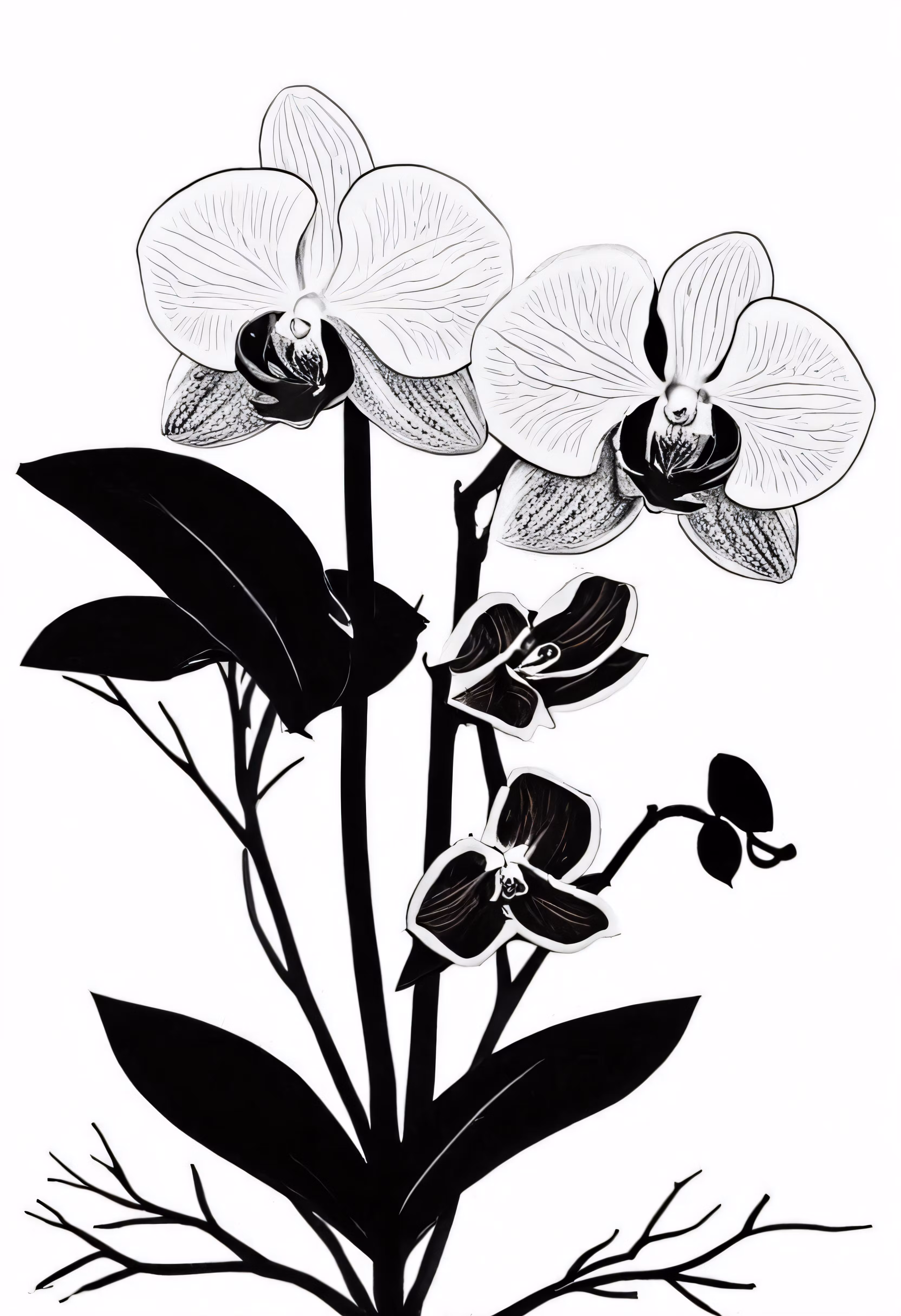 High resolution picture, free to use, a picture of flowers with leaves in black and white