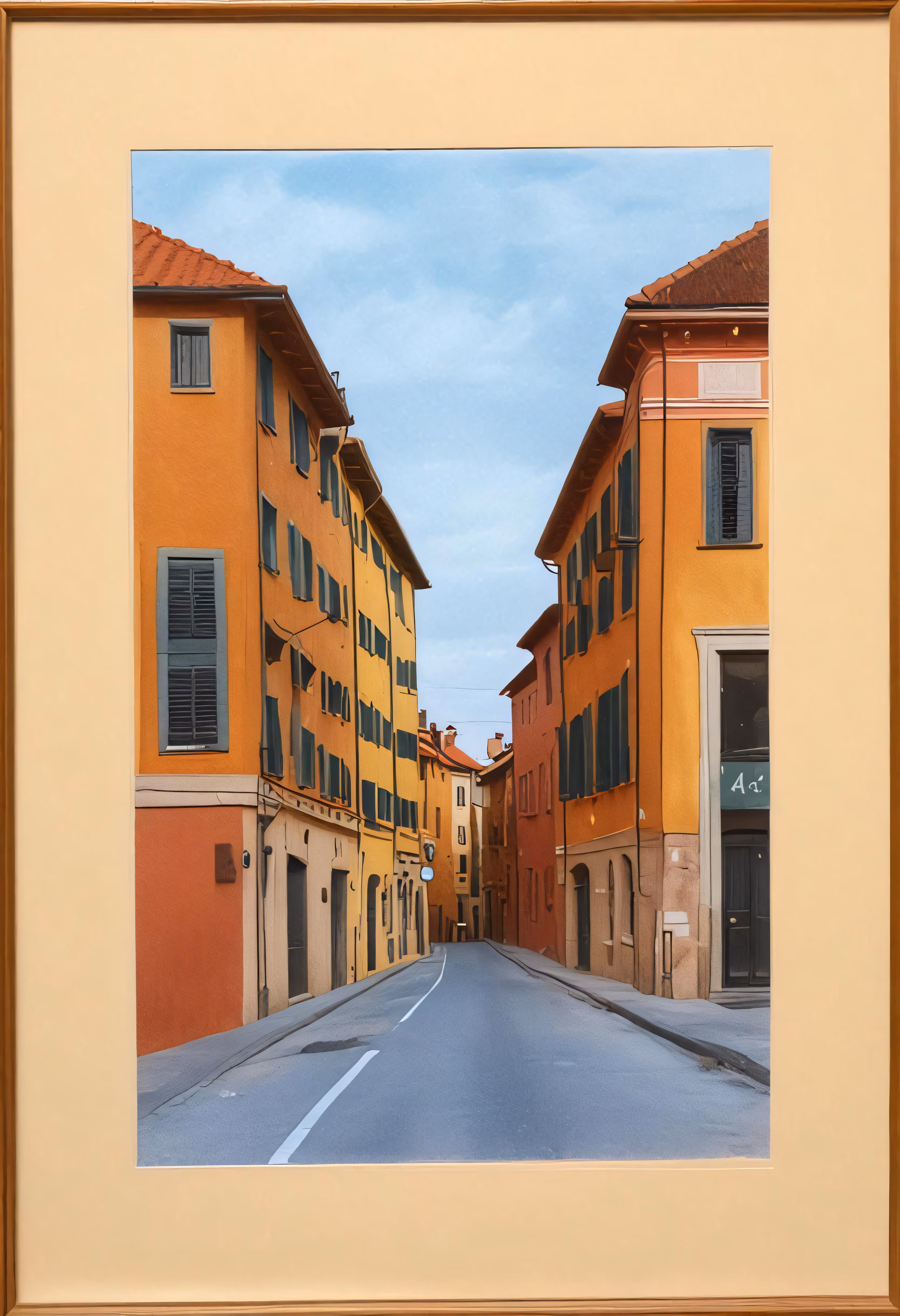 High resolution picture, free to use, a picture of some yellow buildings and the sky