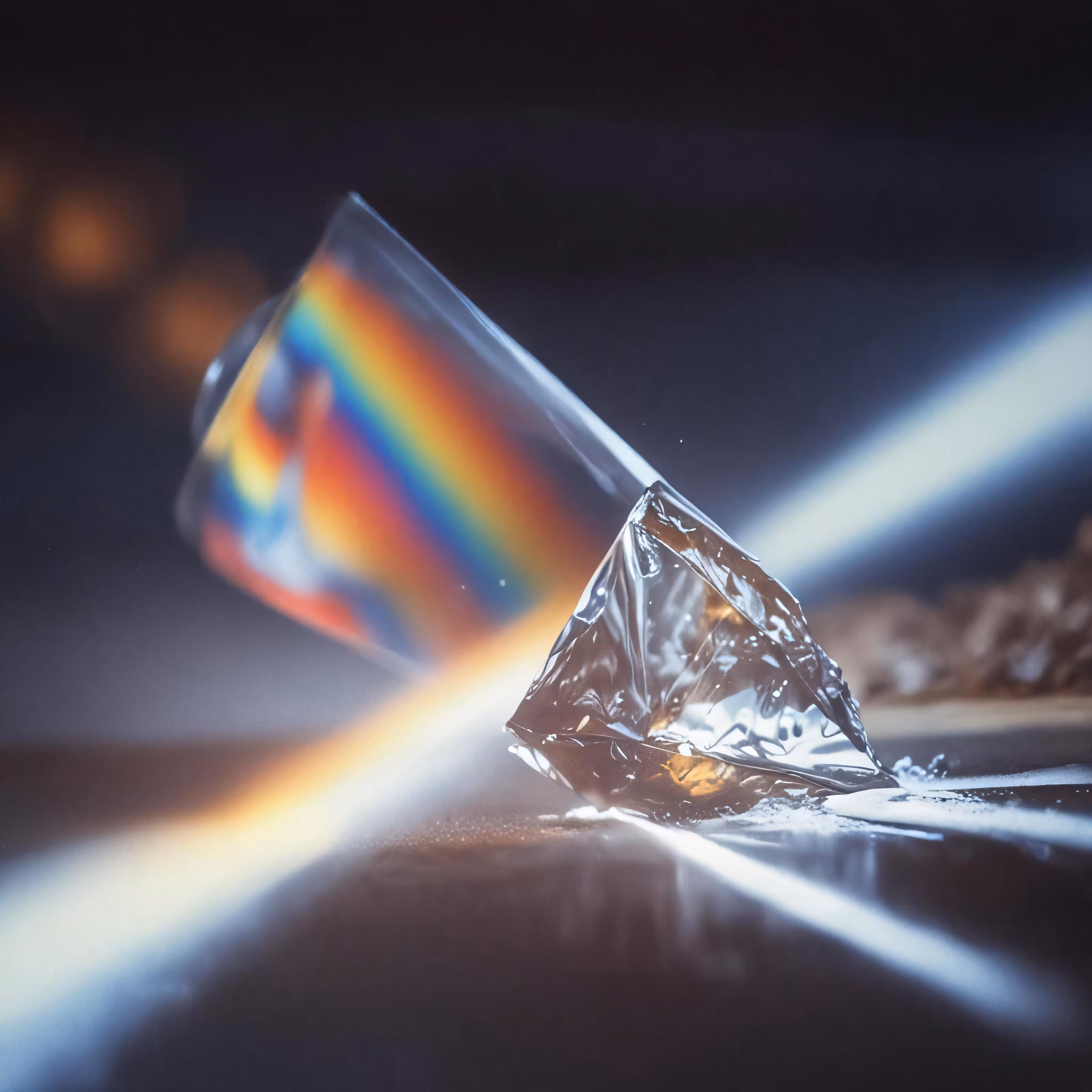 High resolution picture, free to use, a piece of plastic with colored light coming out from it