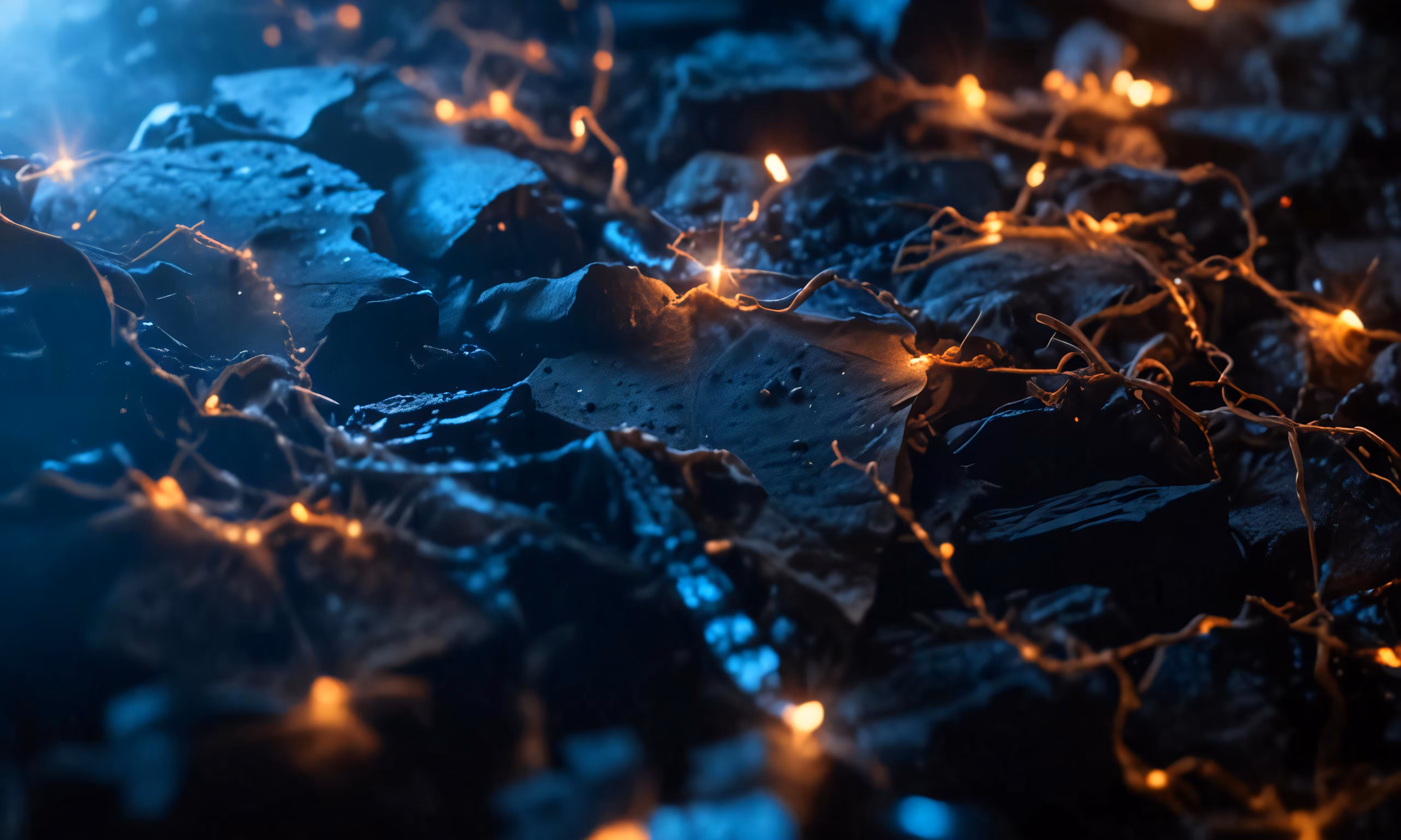 High resolution picture, free to use, a pile of rocks is covered with some small lights