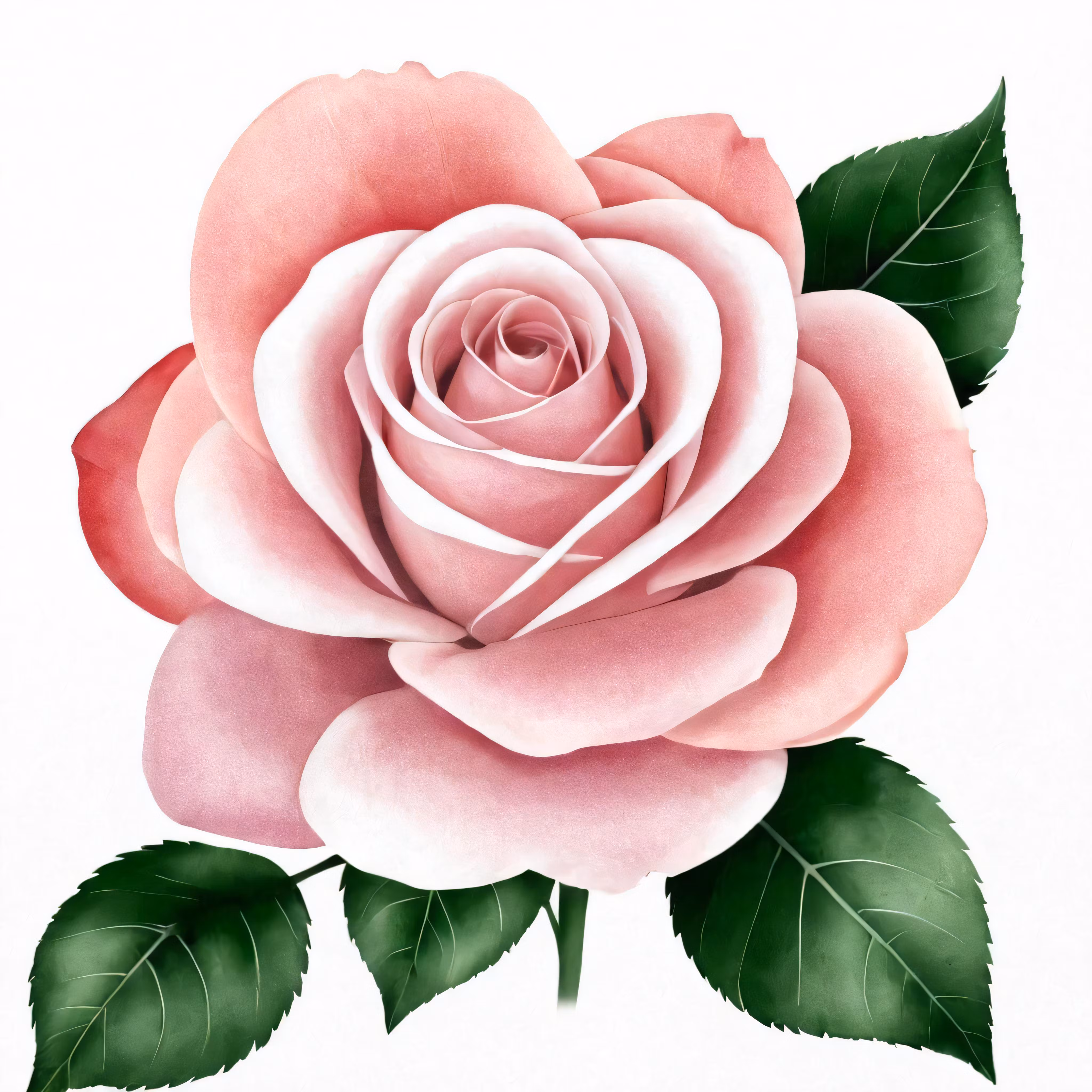 High resolution picture, free to use, a pink rose with green leaves is displayed