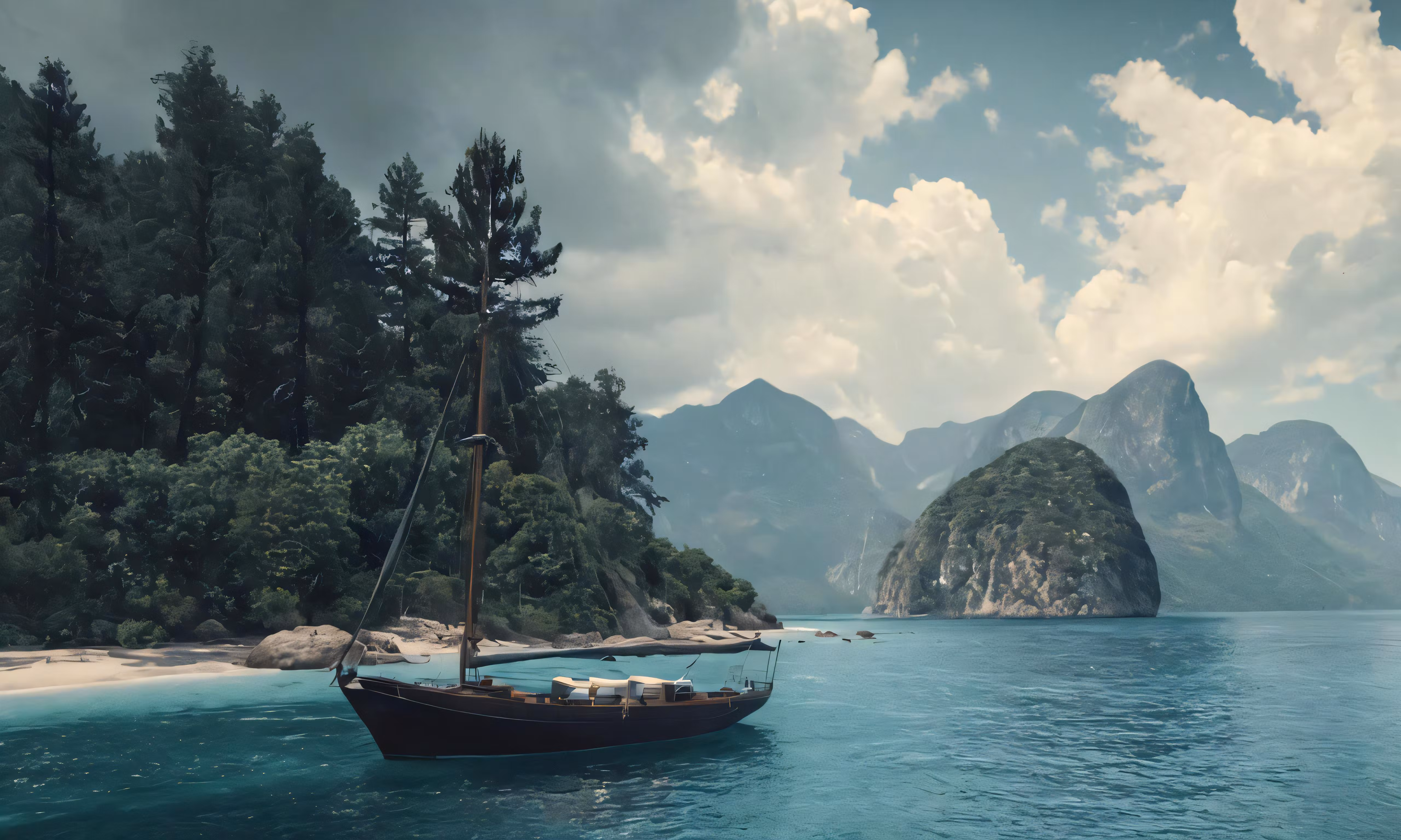 High resolution picture, free to use, a pirate ship sailing across a large body of water