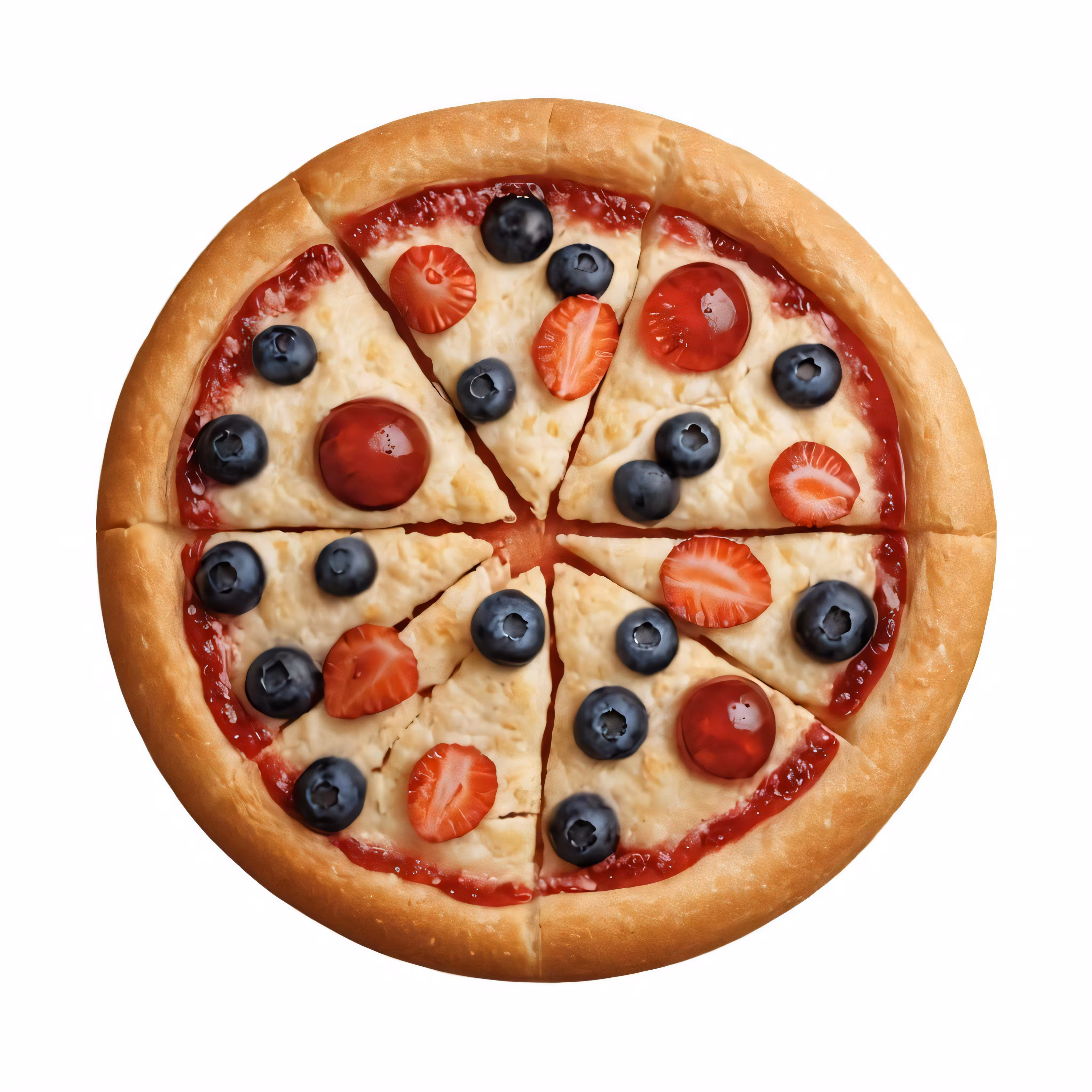 High resolution picture, free to use, a pizza with blueberries, strawberries and other toppings