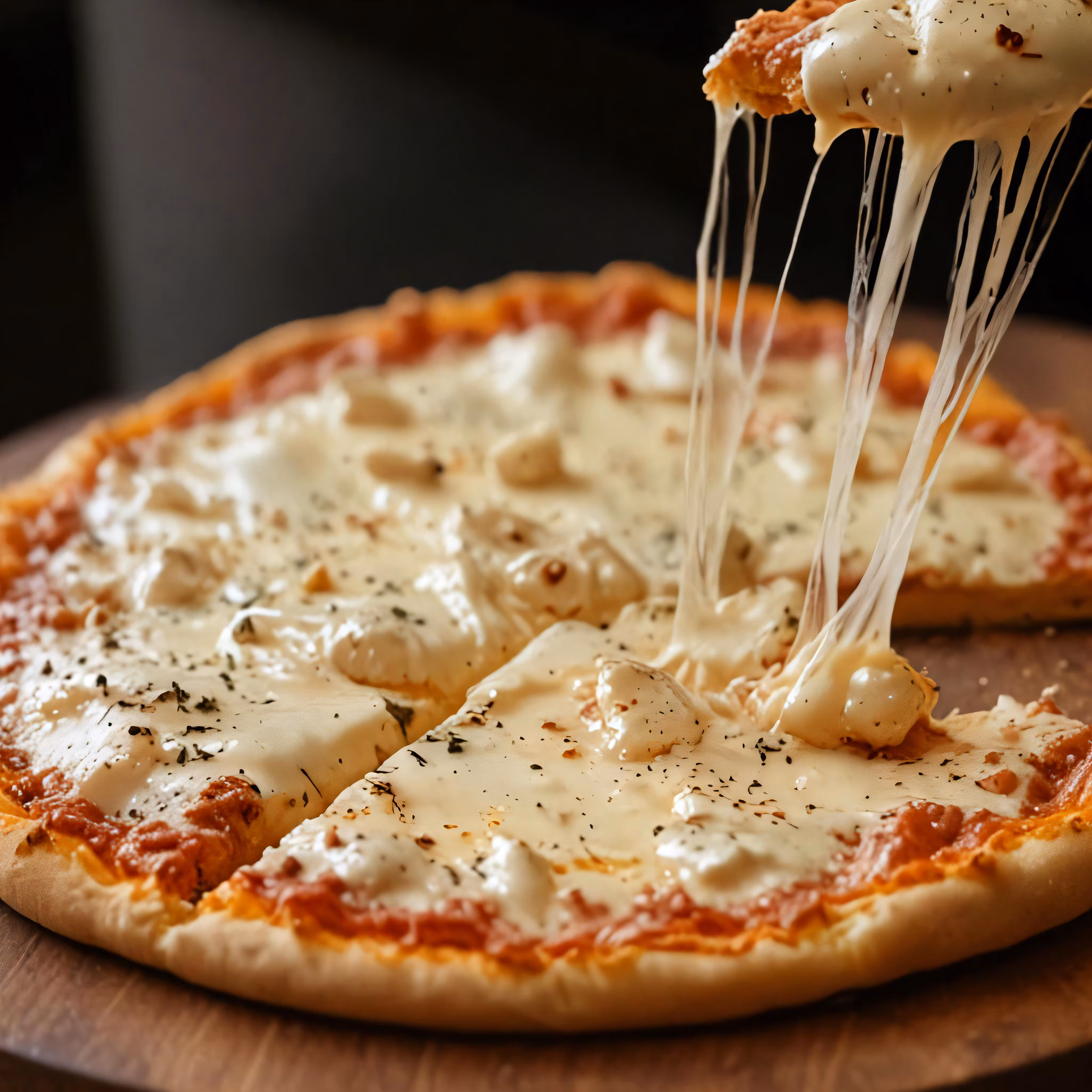 High resolution picture, free to use, a pizza with cheese being sliced by a knife