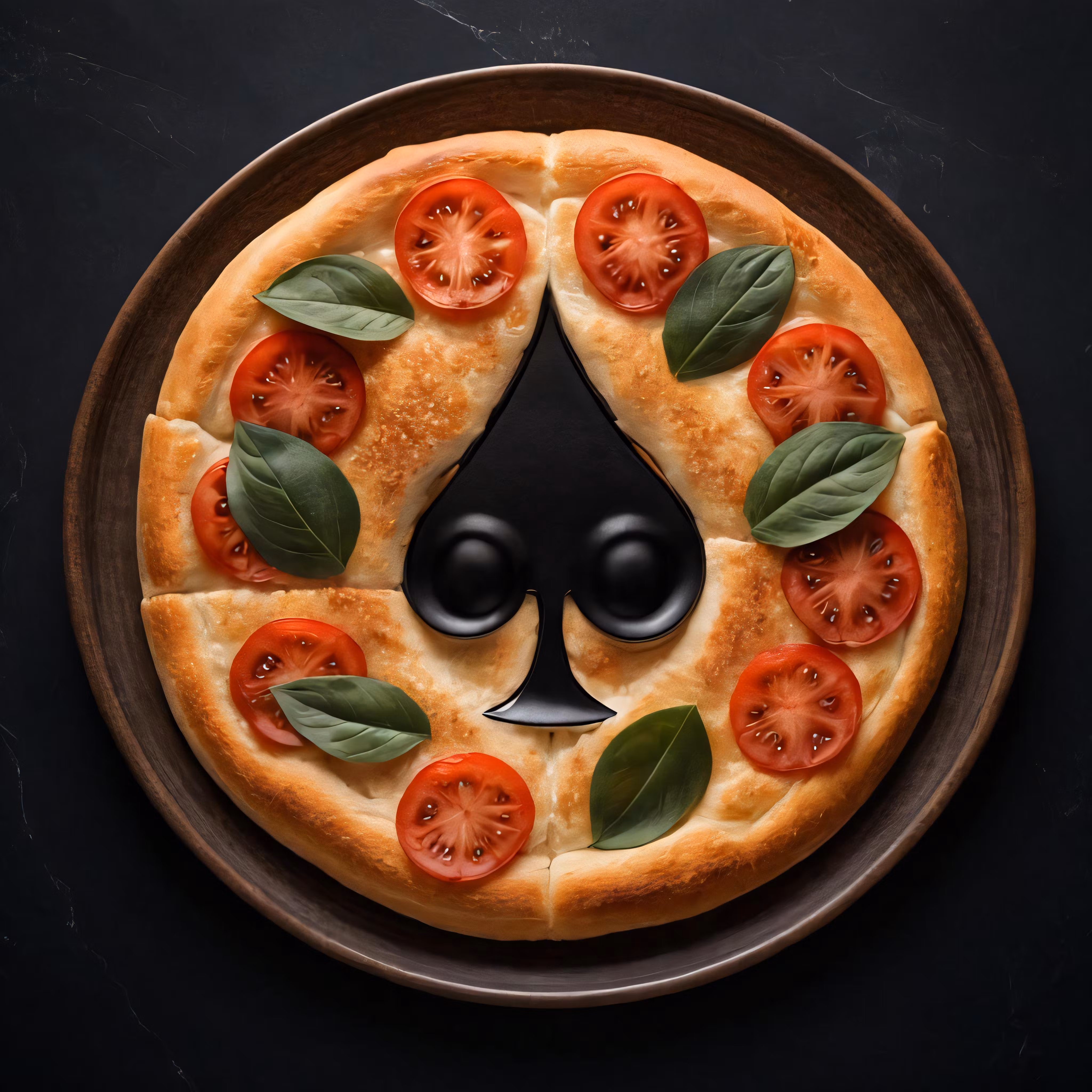 High resolution picture, free to use, a pizza with olive leaves, tomatoes and tomato slices