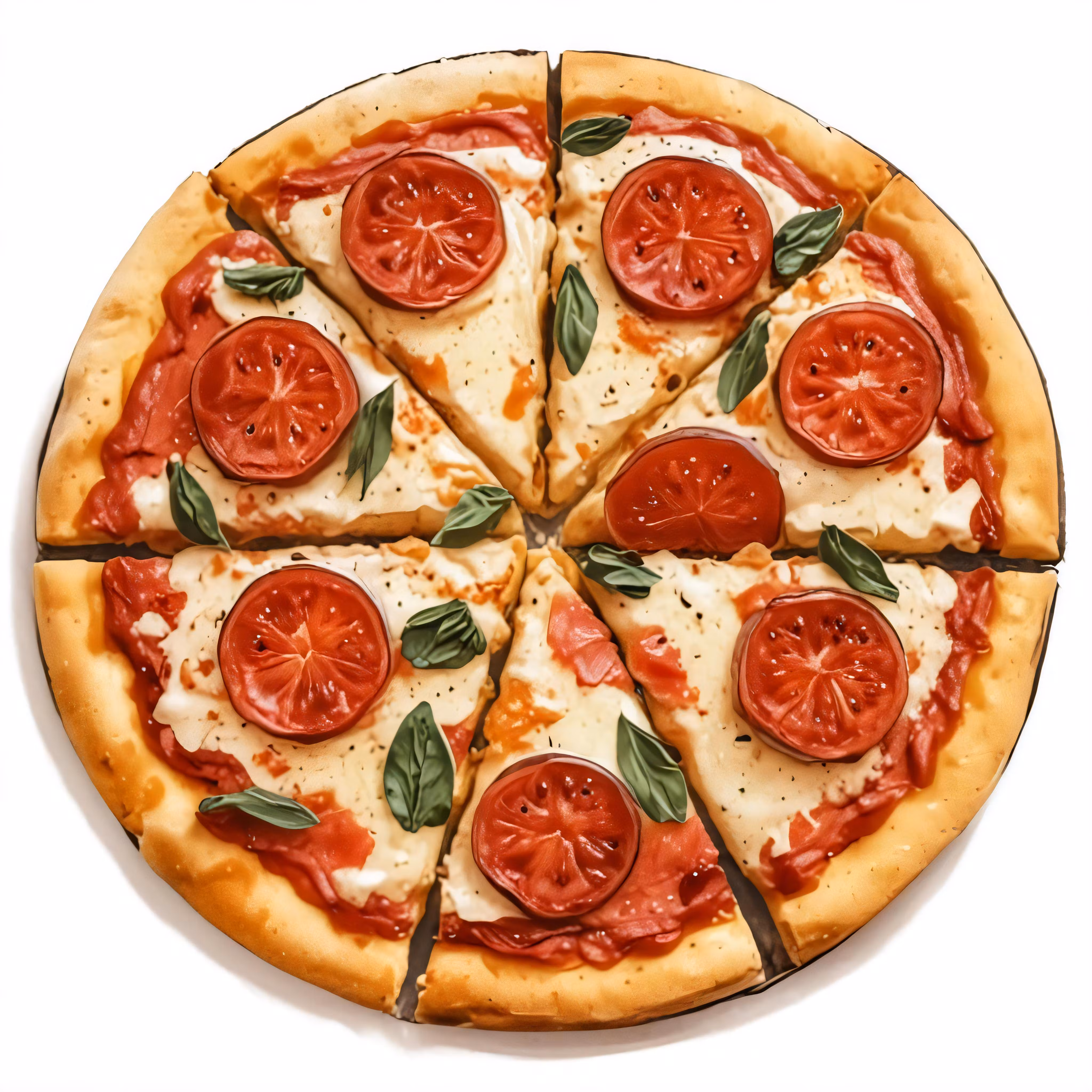 High resolution picture, free to use, a pizza with tomatoes and mozzarella on it