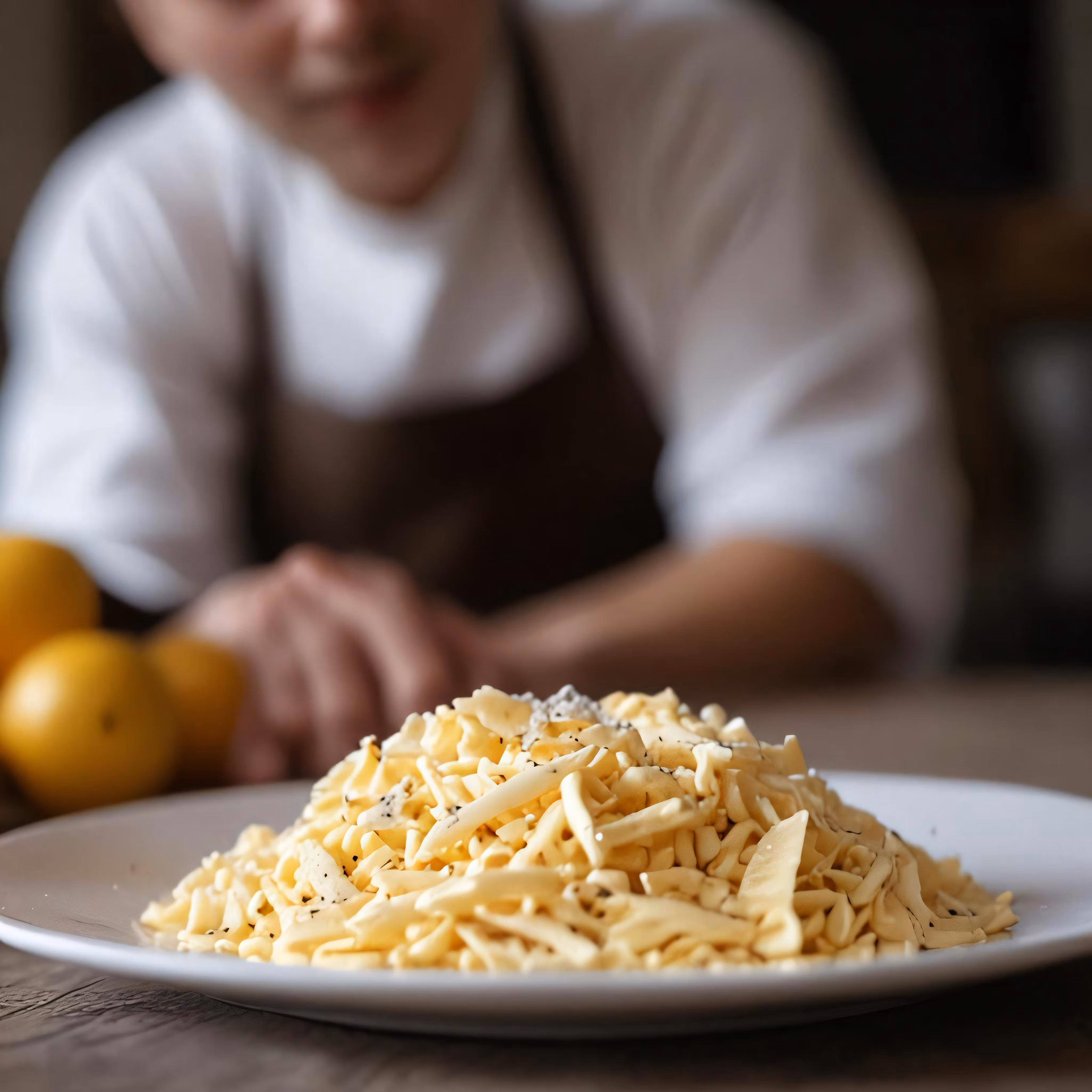 High resolution picture, free to use, a plate of noodles on a table next to some lemons