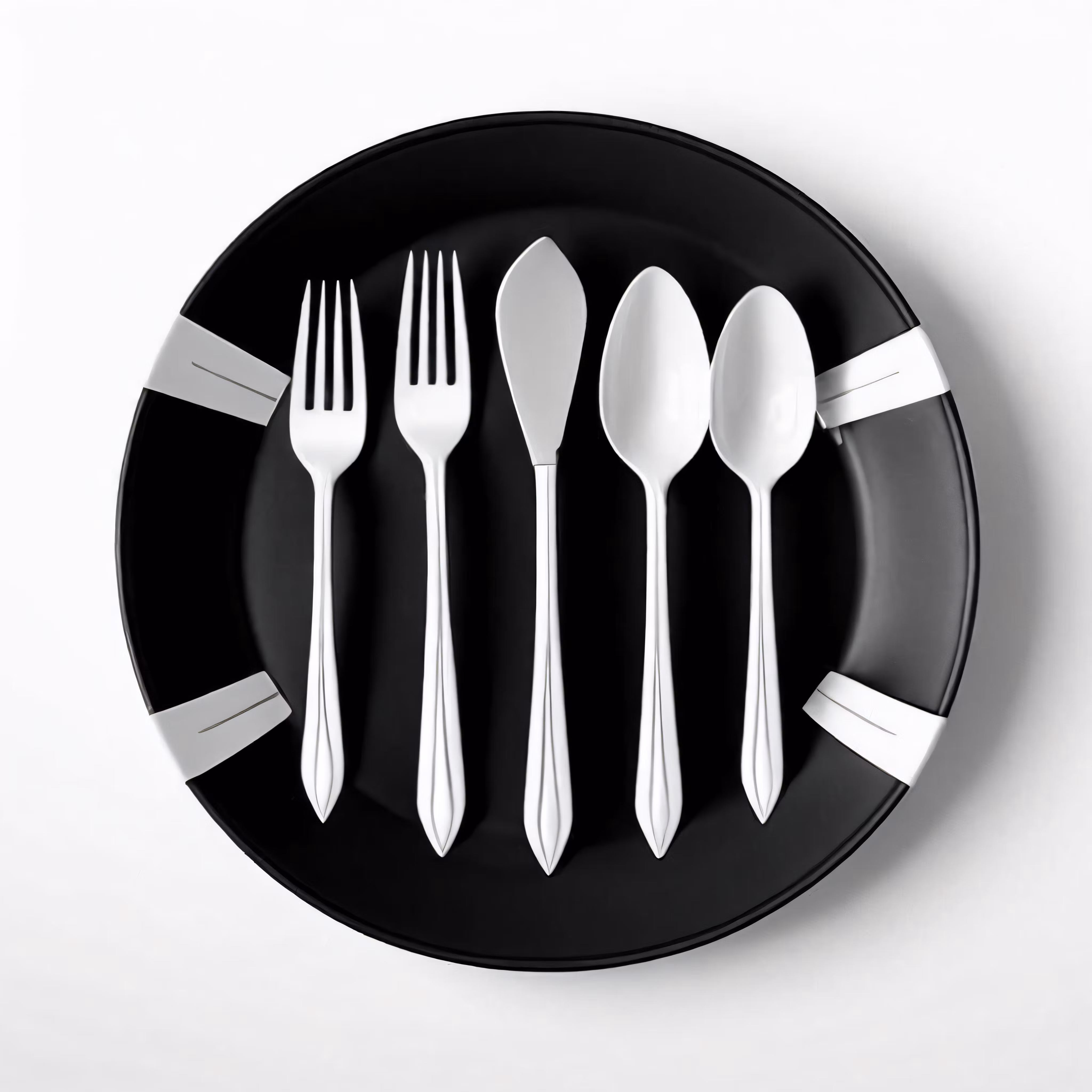 High resolution picture, free to use, a plate with six spoons and a fork in it