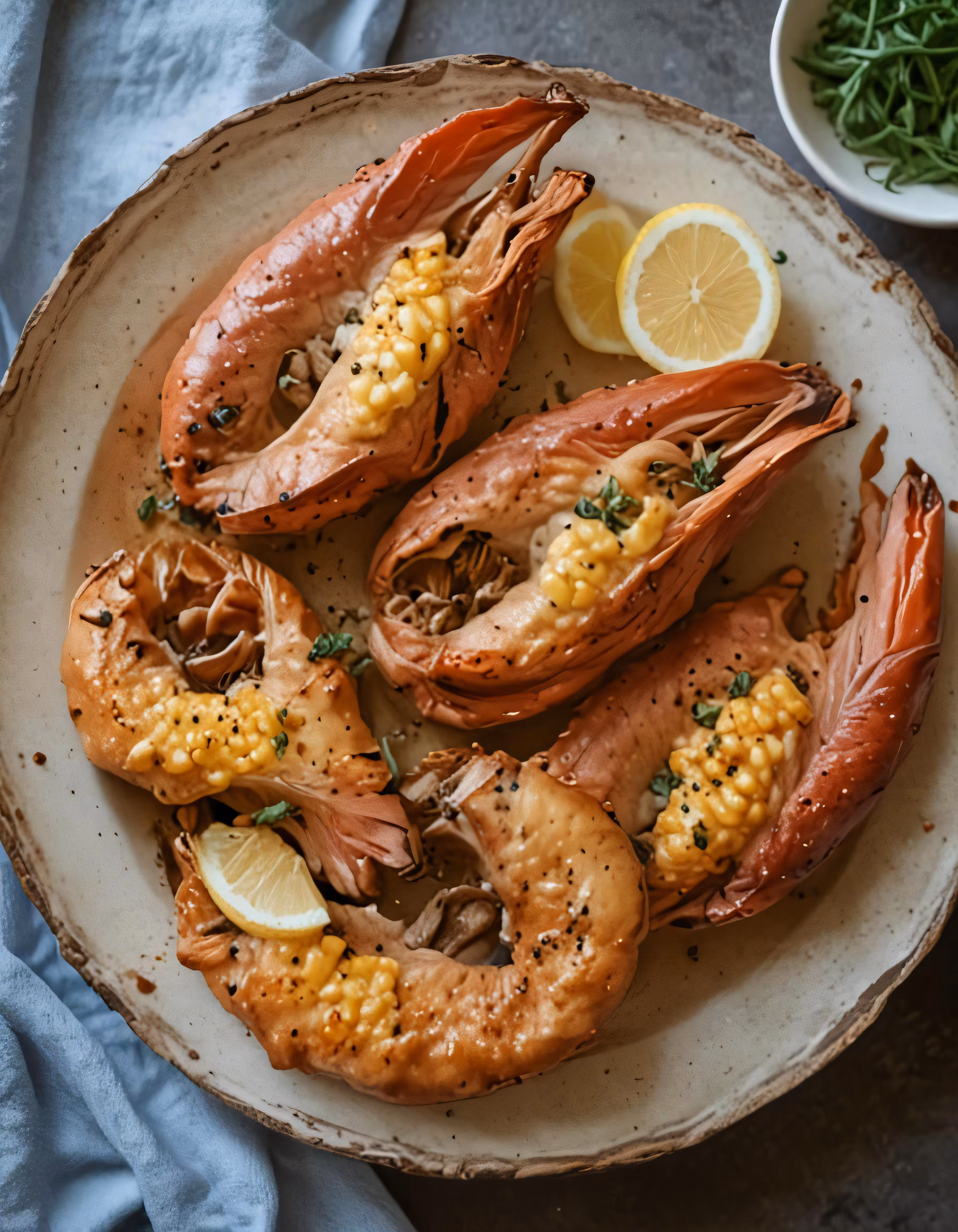 High resolution picture, free to use, a platter of cooked lobsters, with corn and green beans