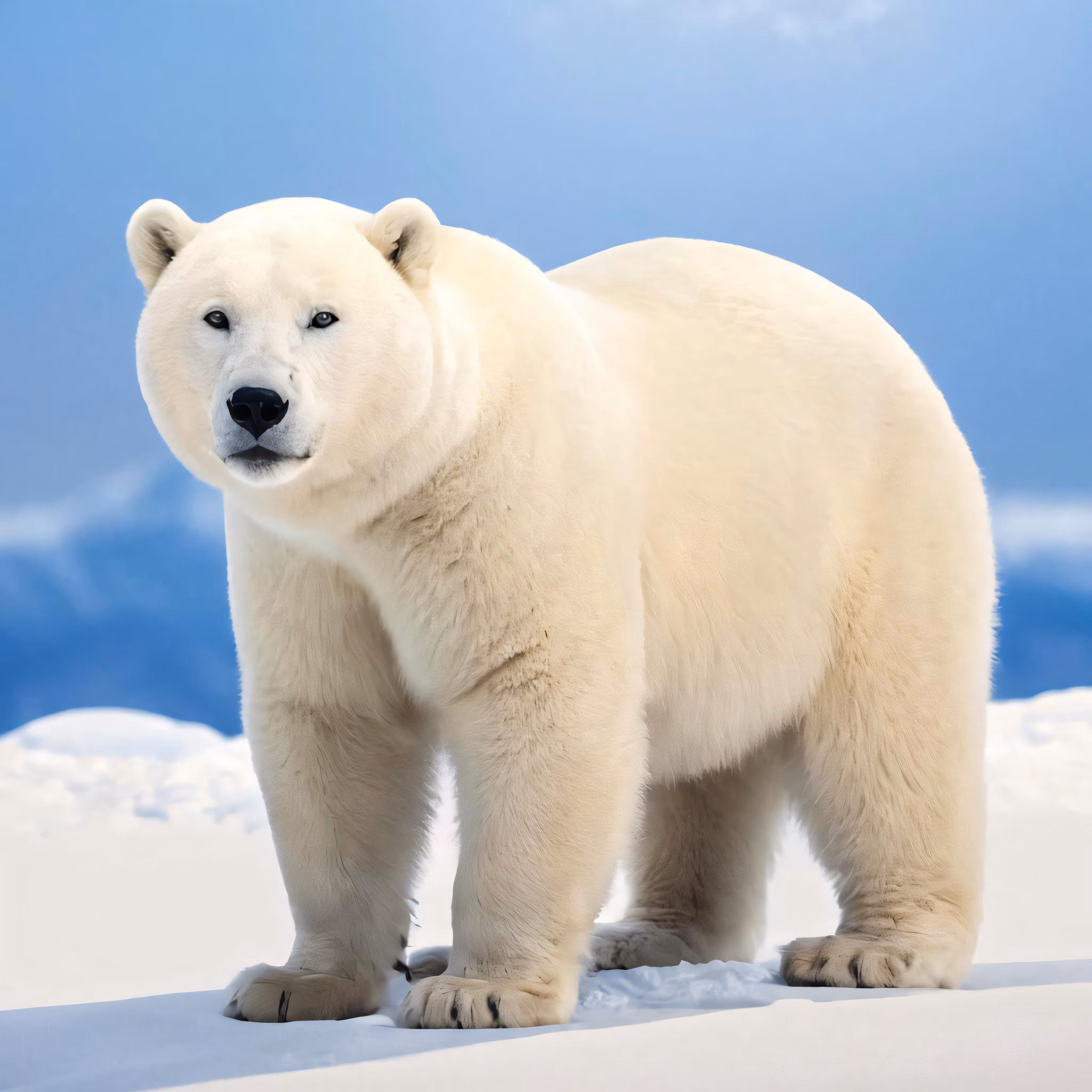 High resolution picture, free to use, a polar bear is standing on a snowy hill
