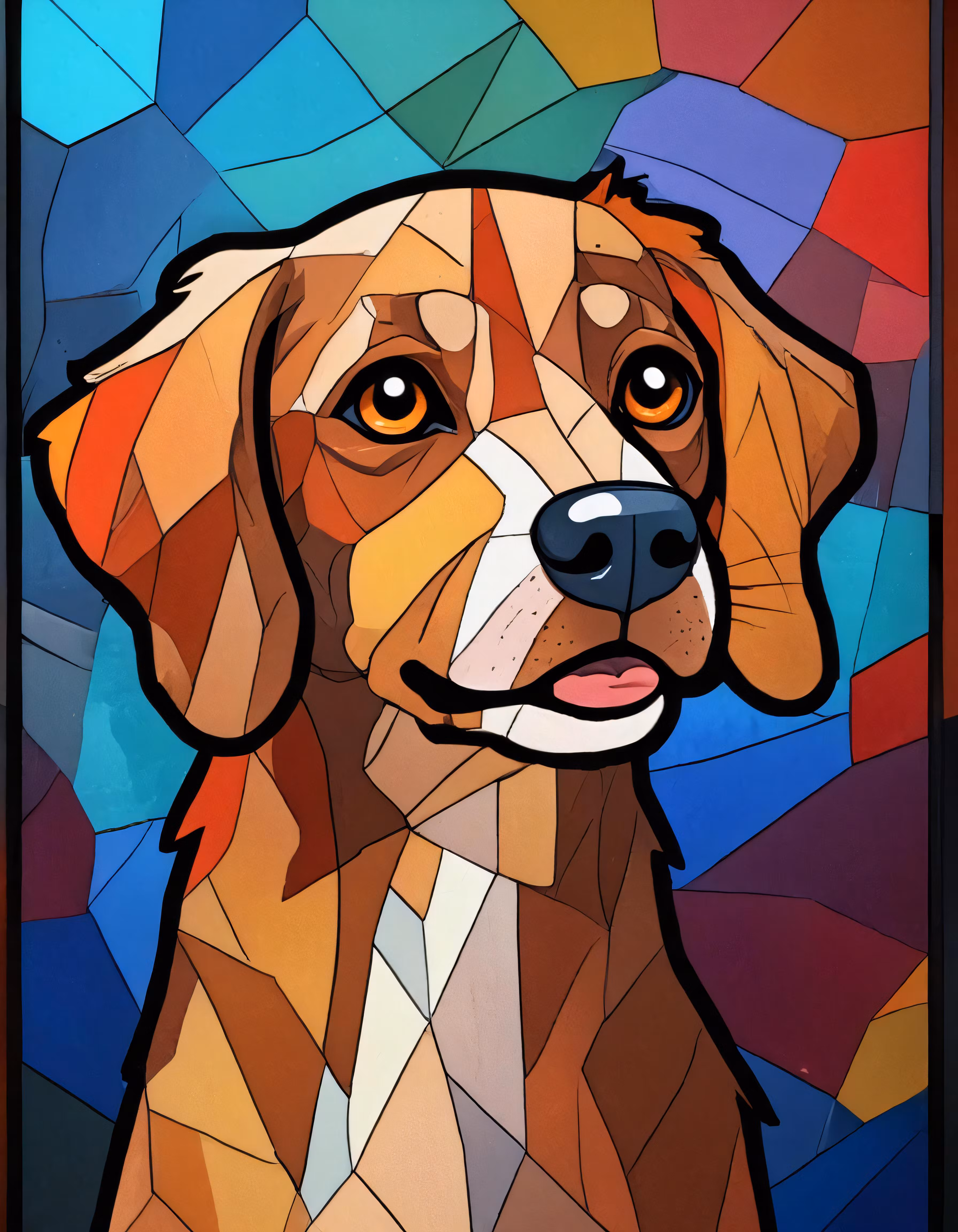 High resolution picture, free to use, a portrait of a dog in a stained glass style