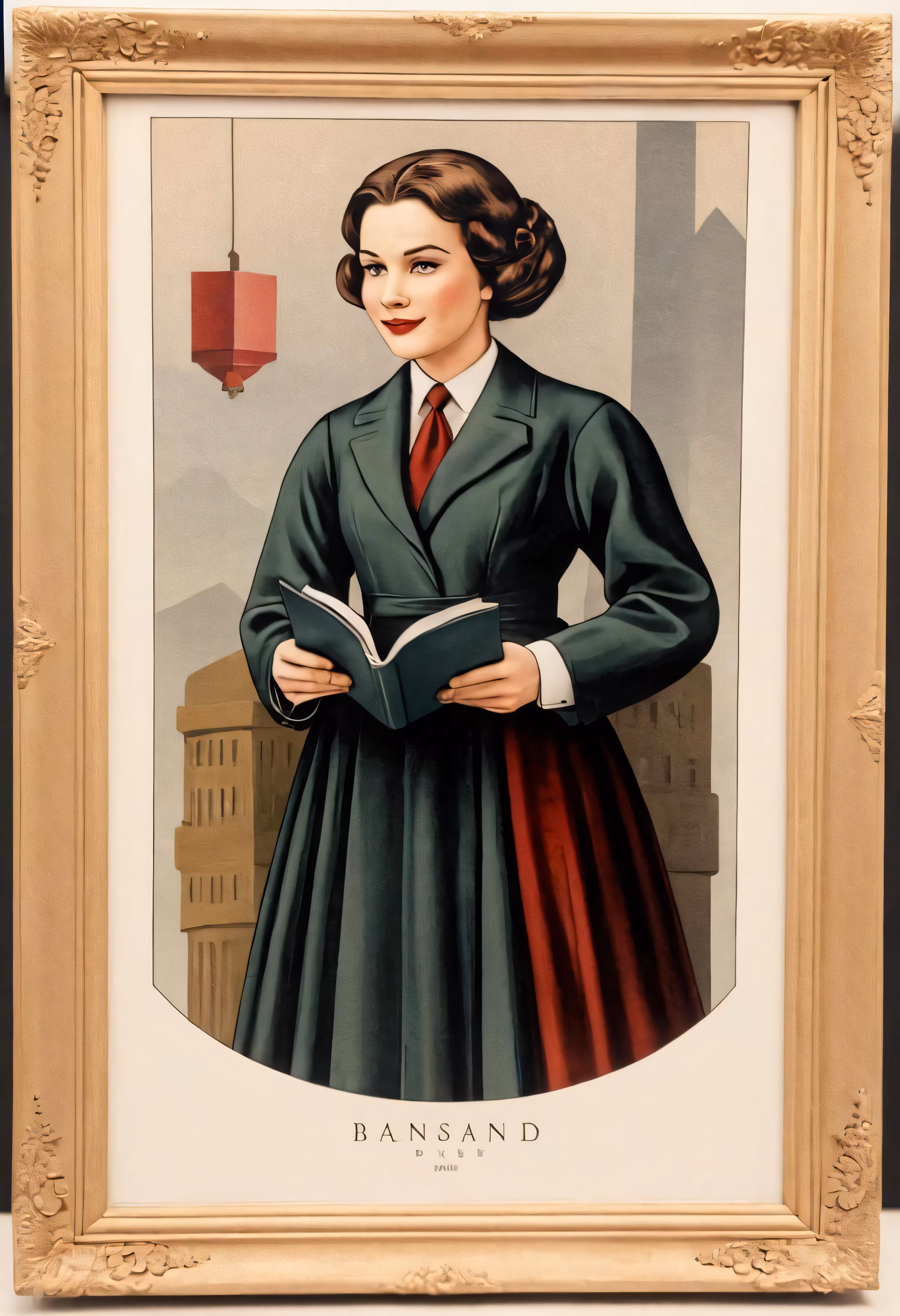 High resolution picture, free to use, a portrait of a lady standing and holding a book
