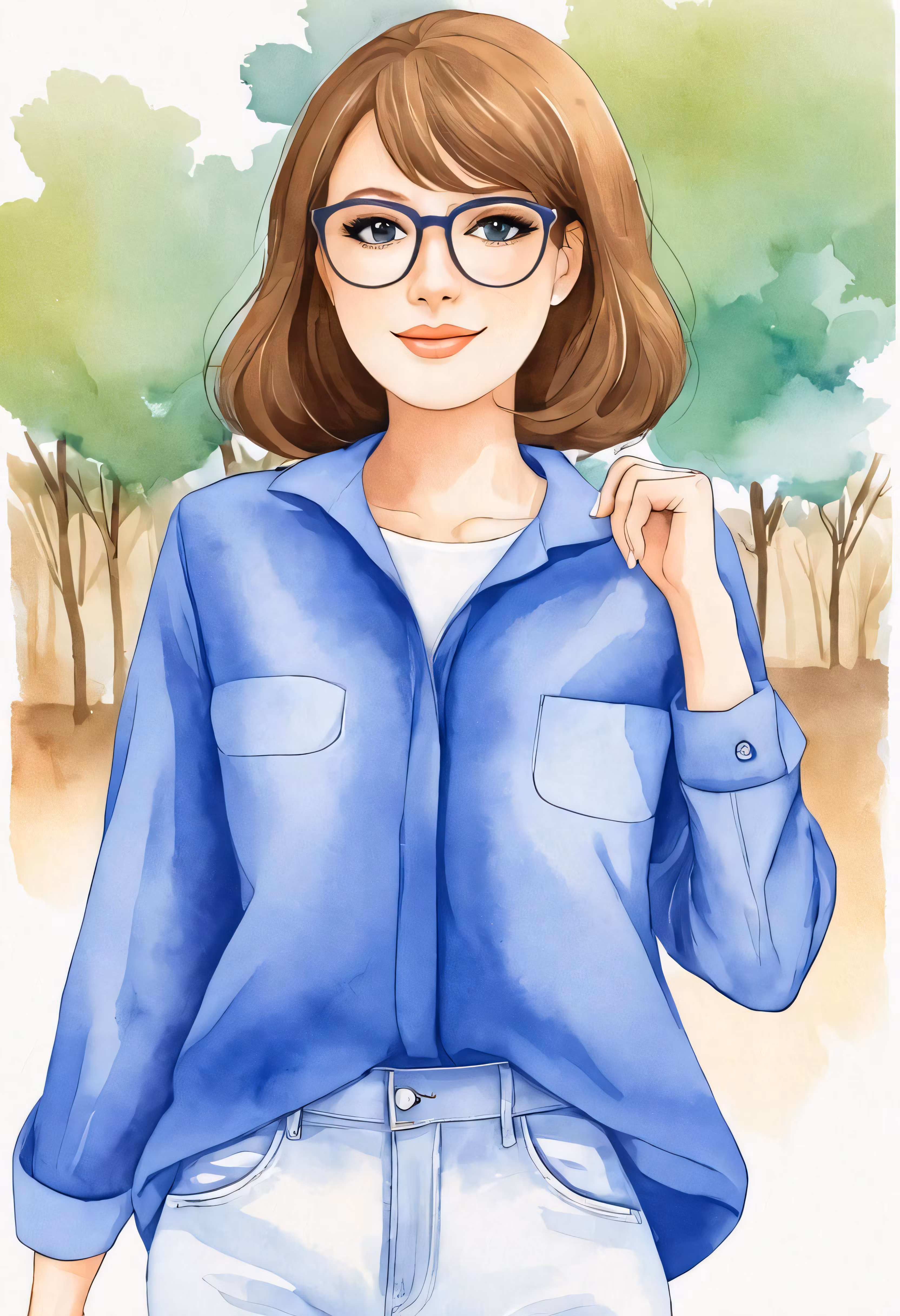 High resolution picture, free to use, a portrait of a woman in glasses and a blue shirt
