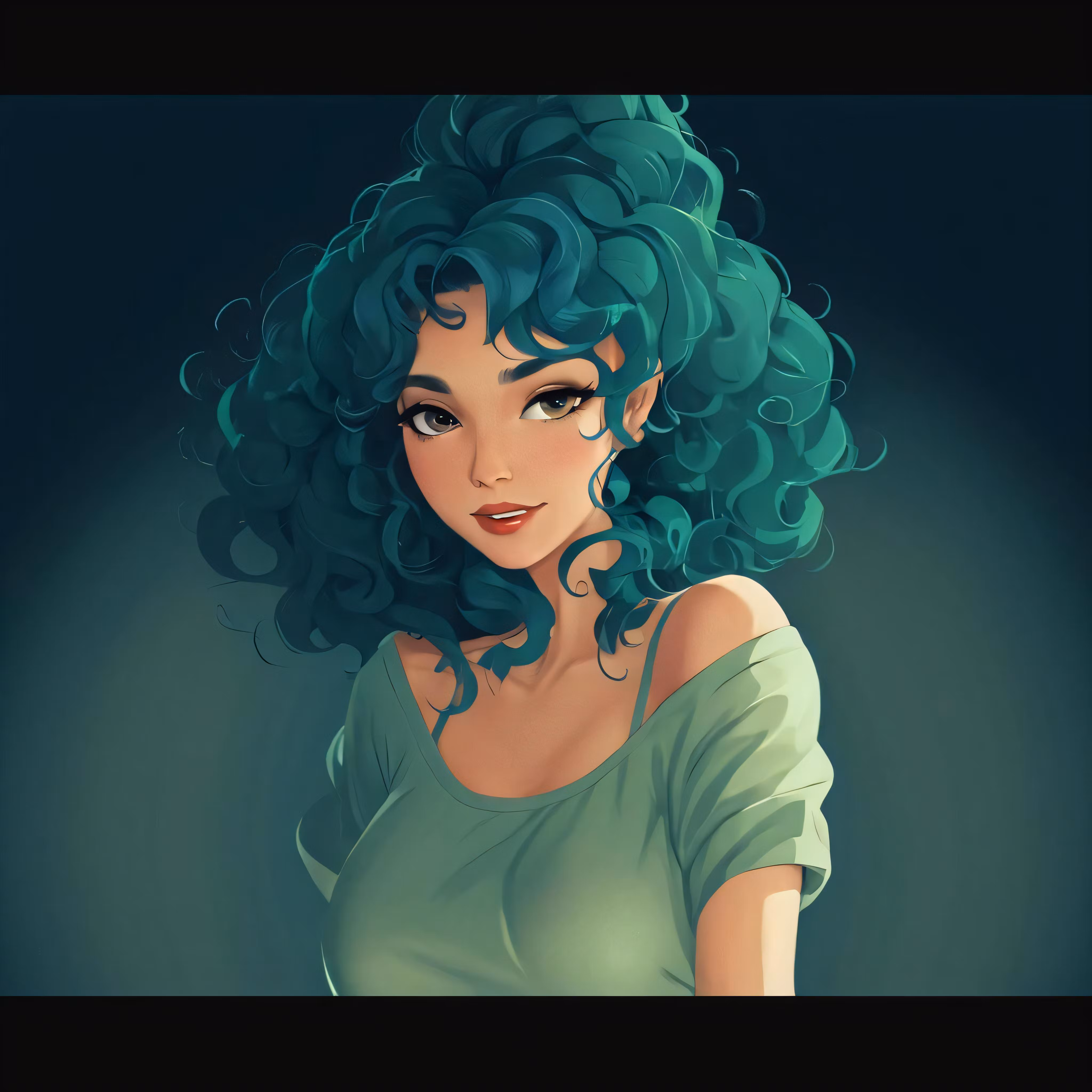 High resolution picture, free to use, a portrait of a woman with blue hair and green dress
