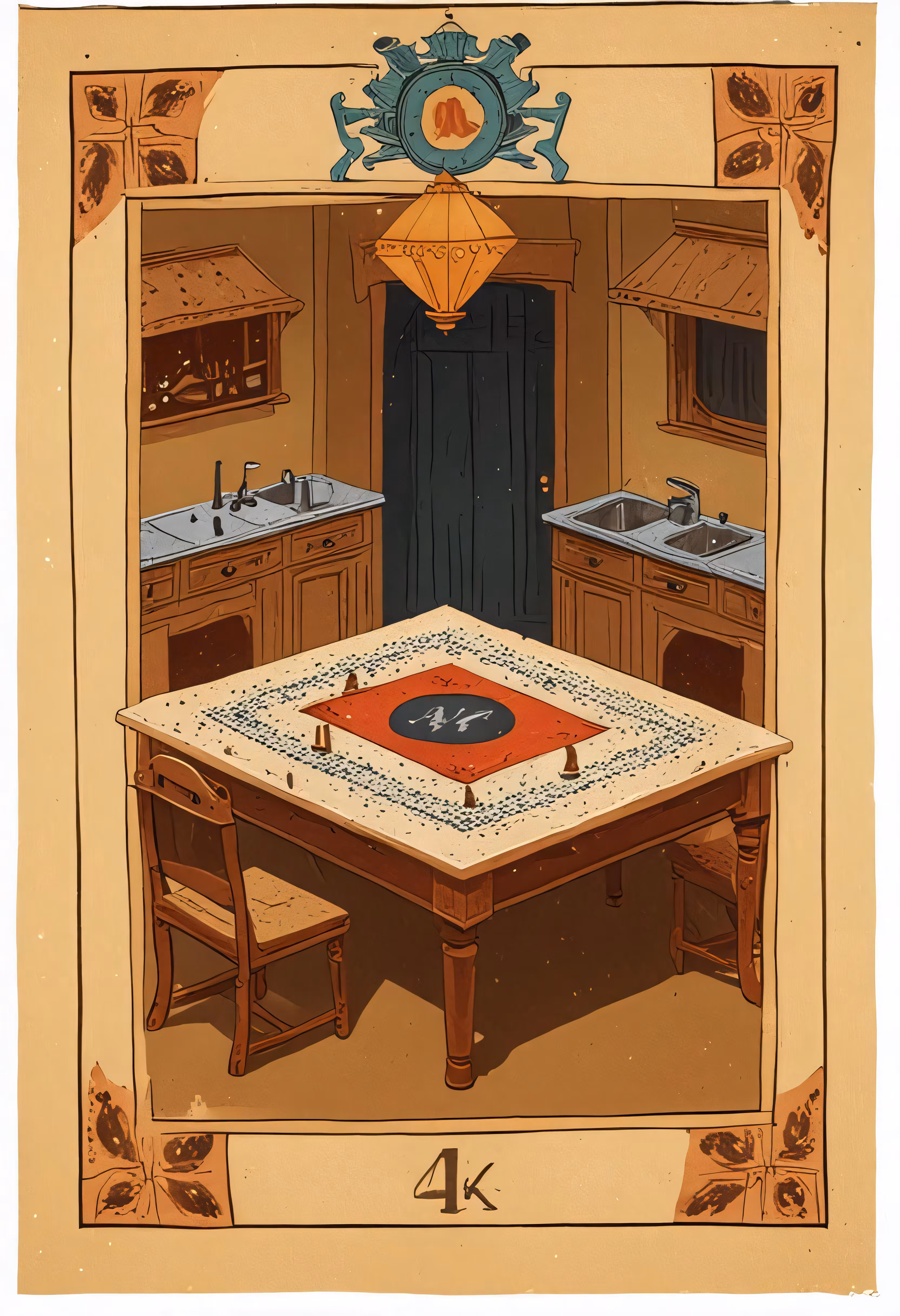 High resolution picture, free to use, a poster depicts an old table in the kitchen