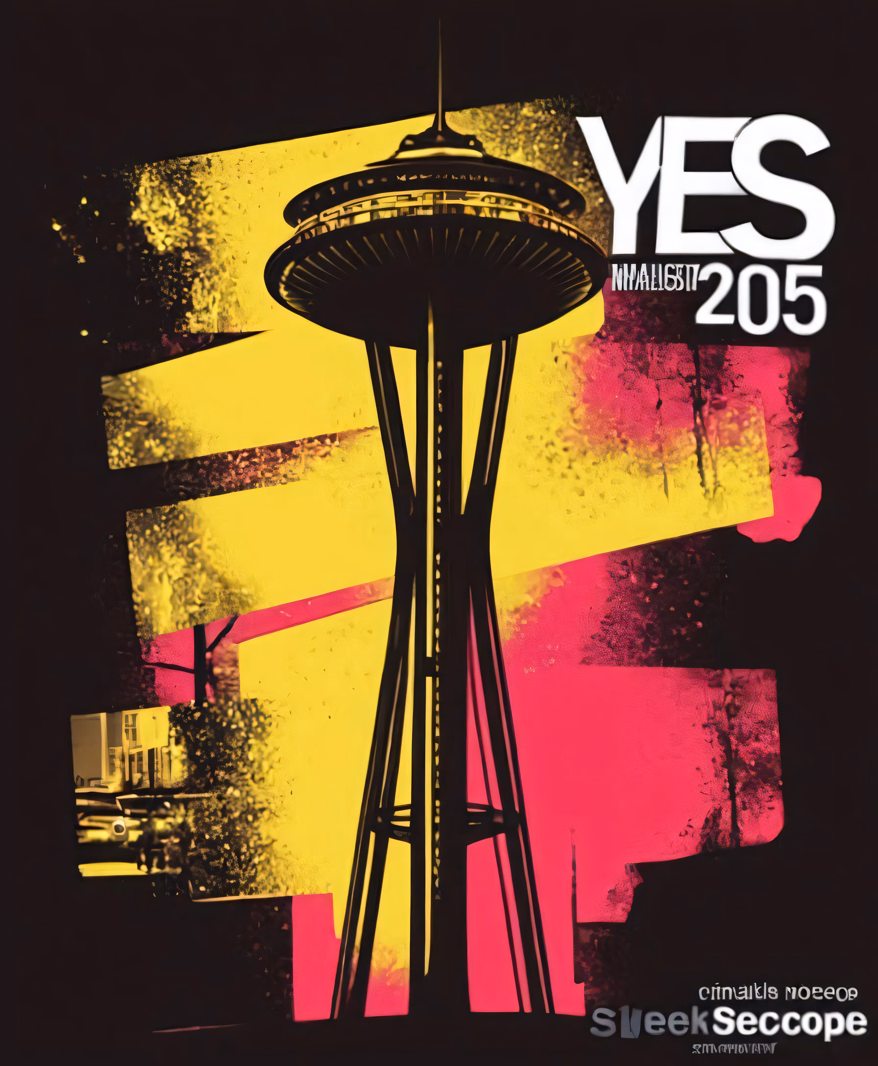 High resolution picture, free to use, a poster for yes music magazine with a tall tower on it