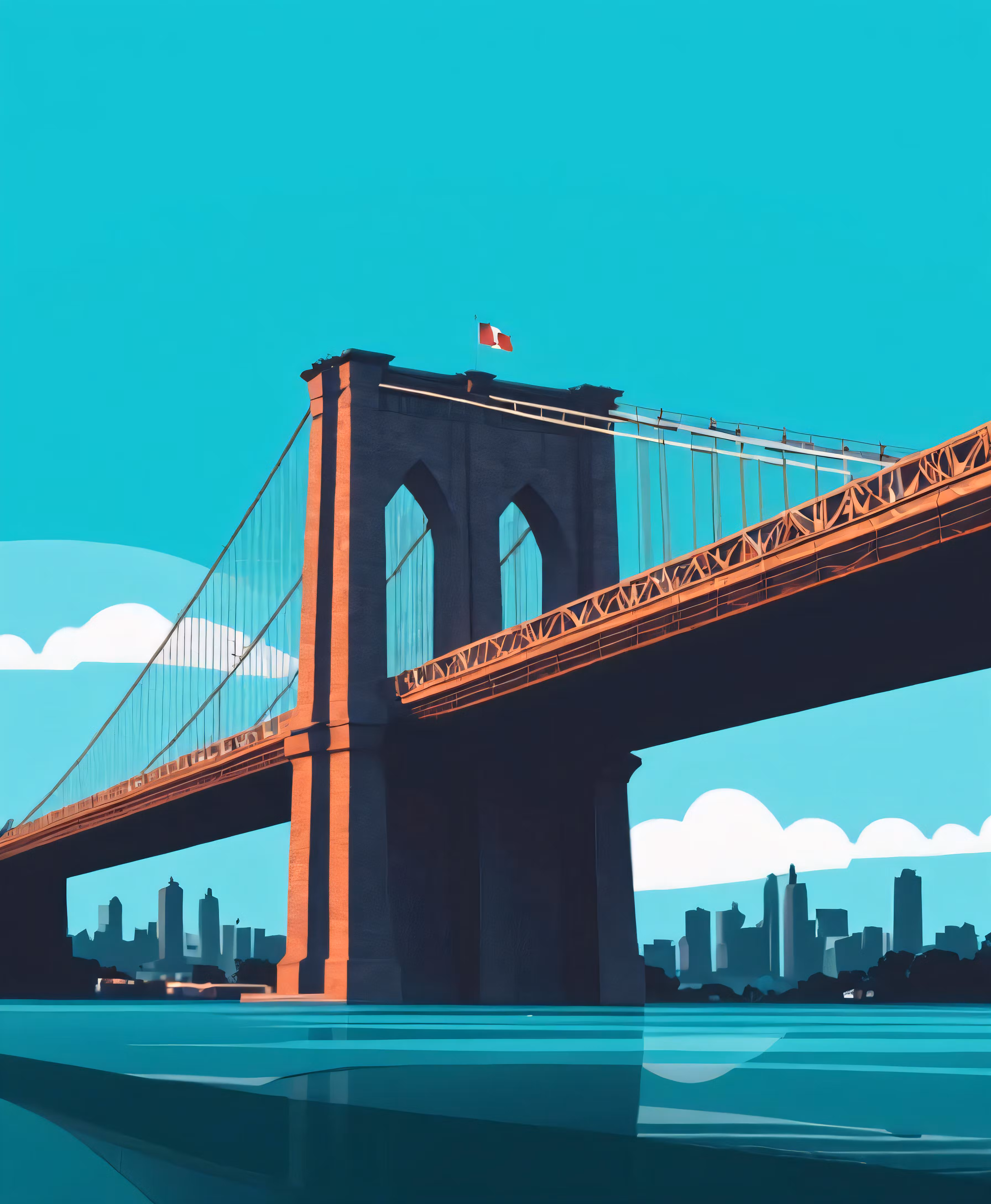 High resolution picture, free to use, a poster has a painting of the brooklyn bridge