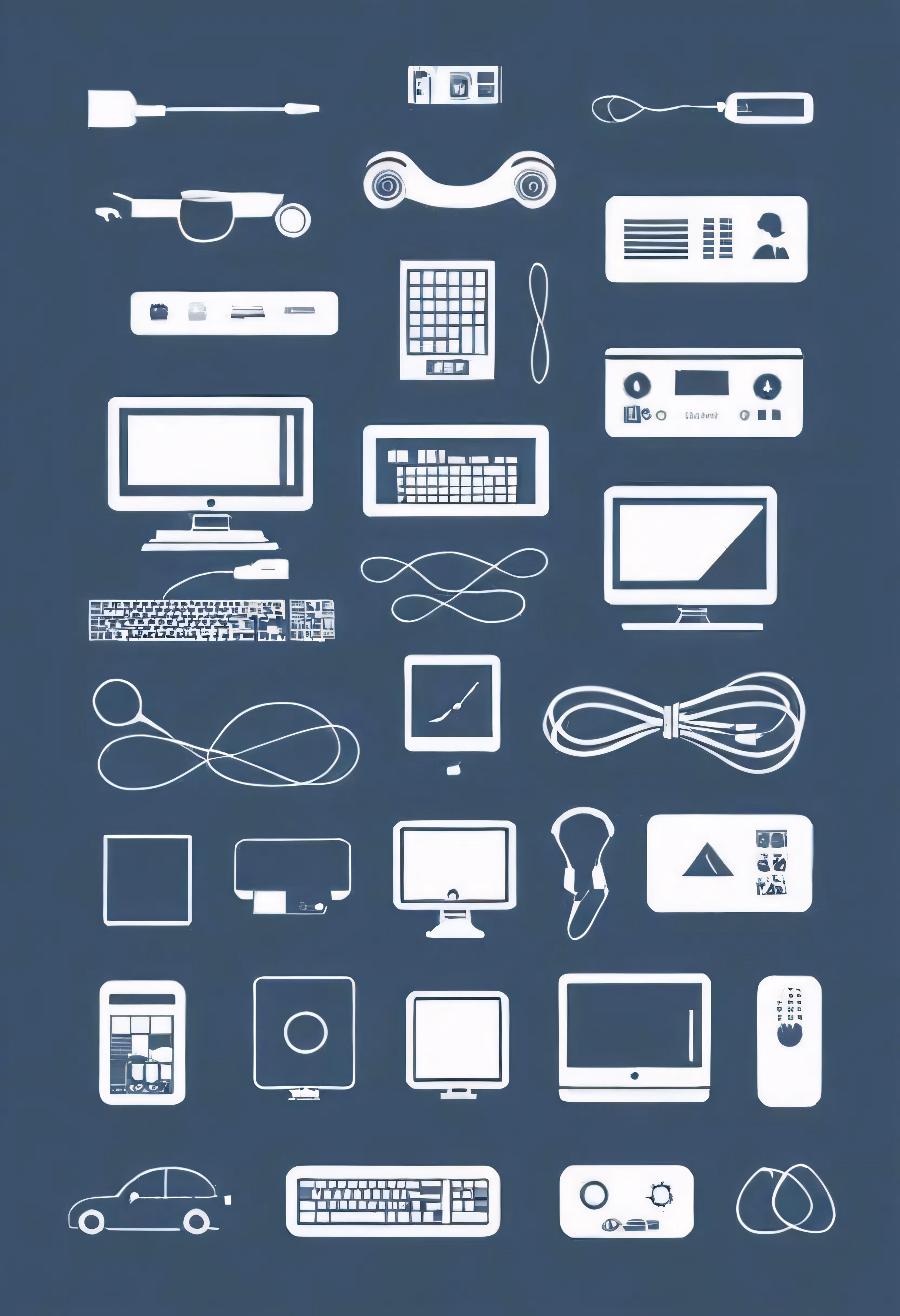 High resolution picture, free to use, a poster with different electronic equipment in it
