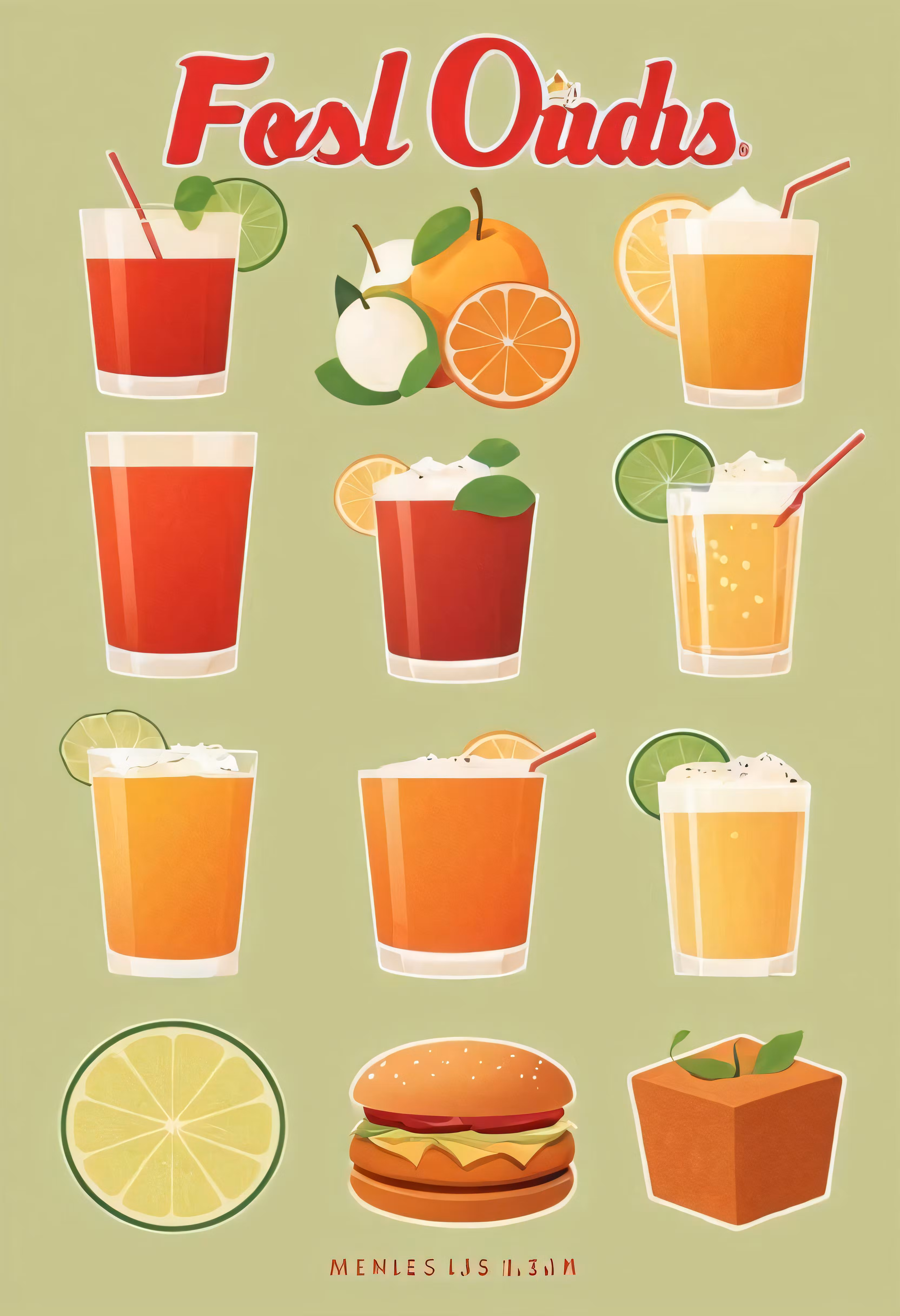 High resolution picture, free to use, a poster with drinks in different glasses on it