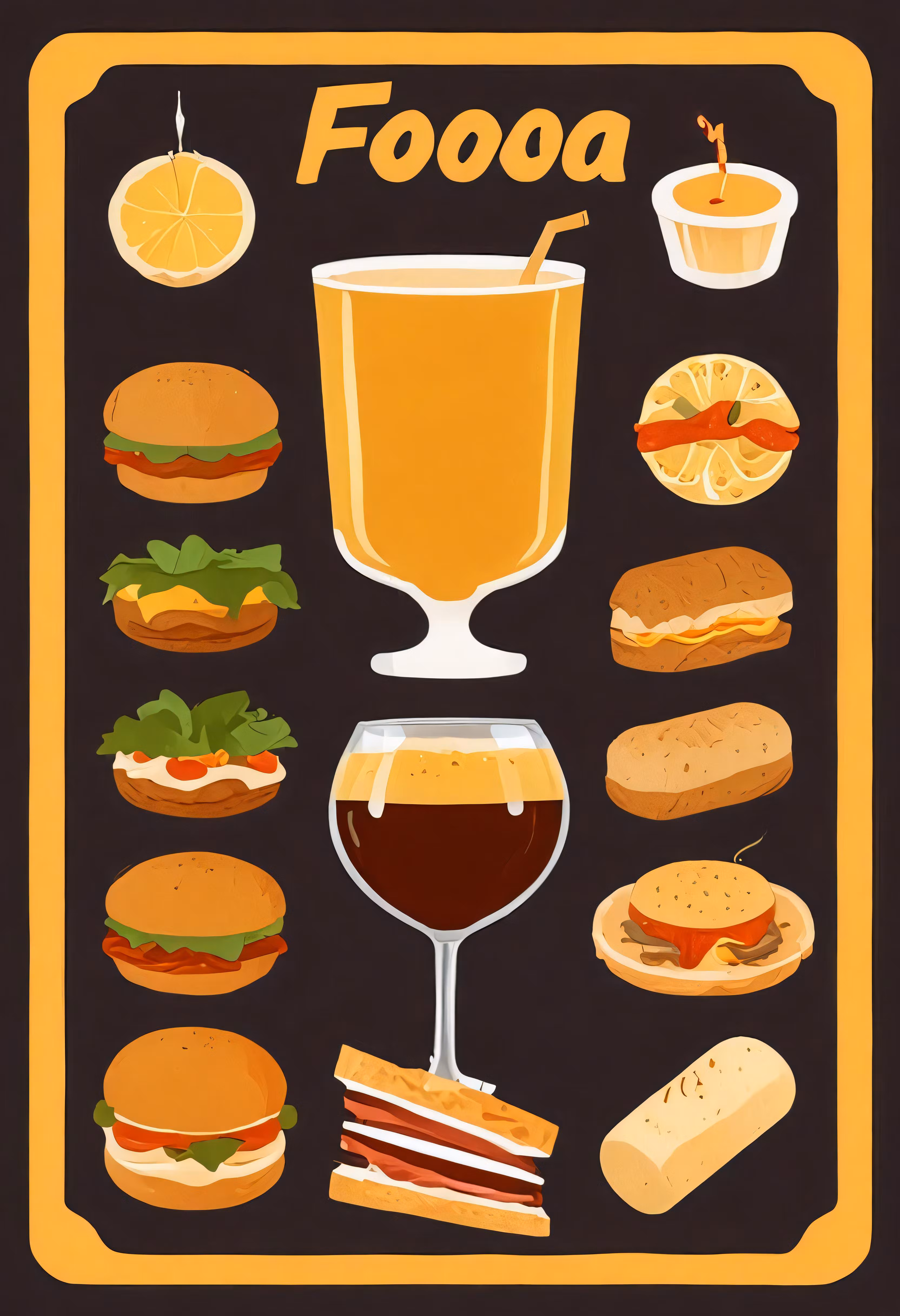 High resolution picture, free to use, a poster with food and beverages on it