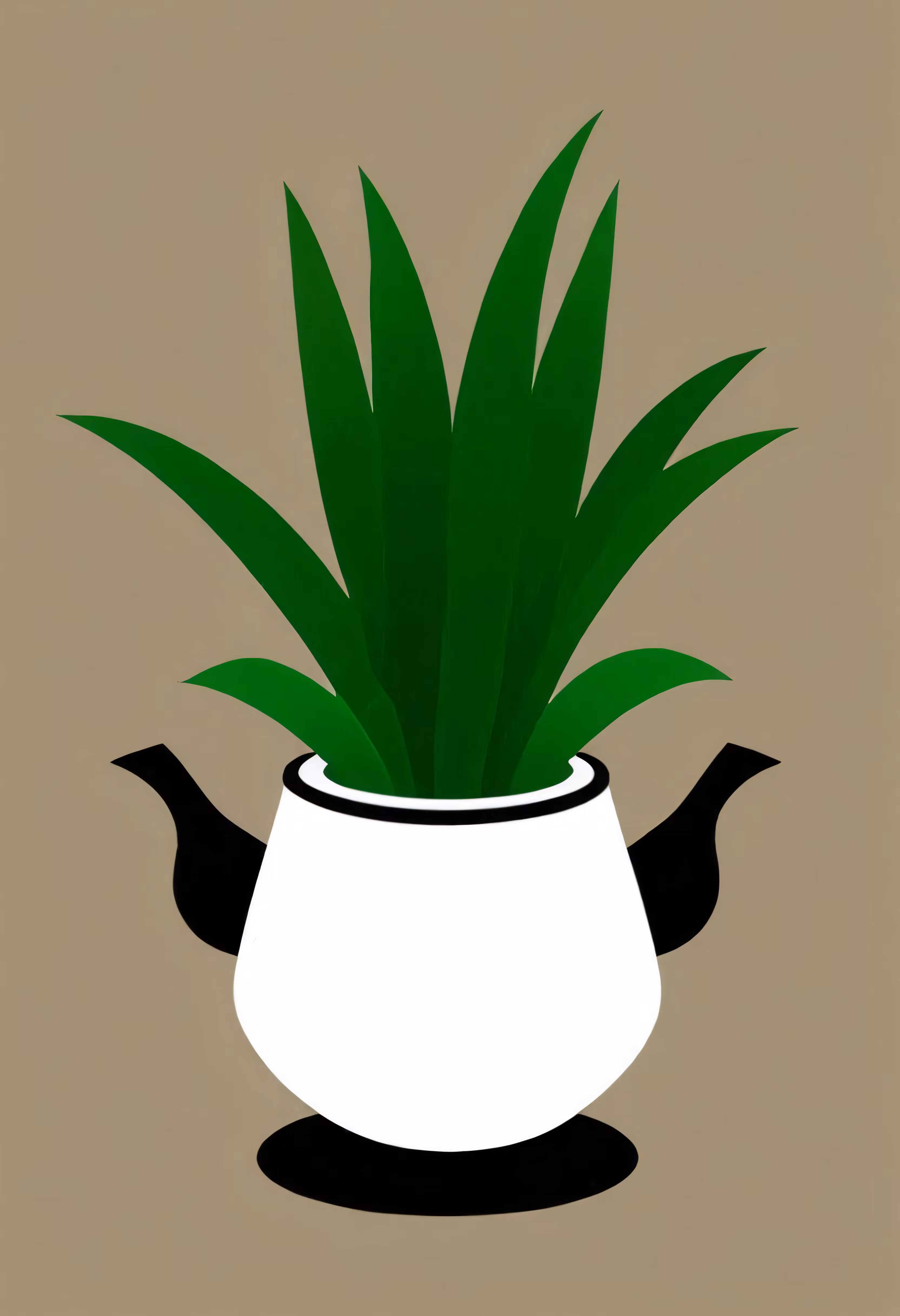 High resolution picture, free to use, a potted plant is placed in a black and white vase