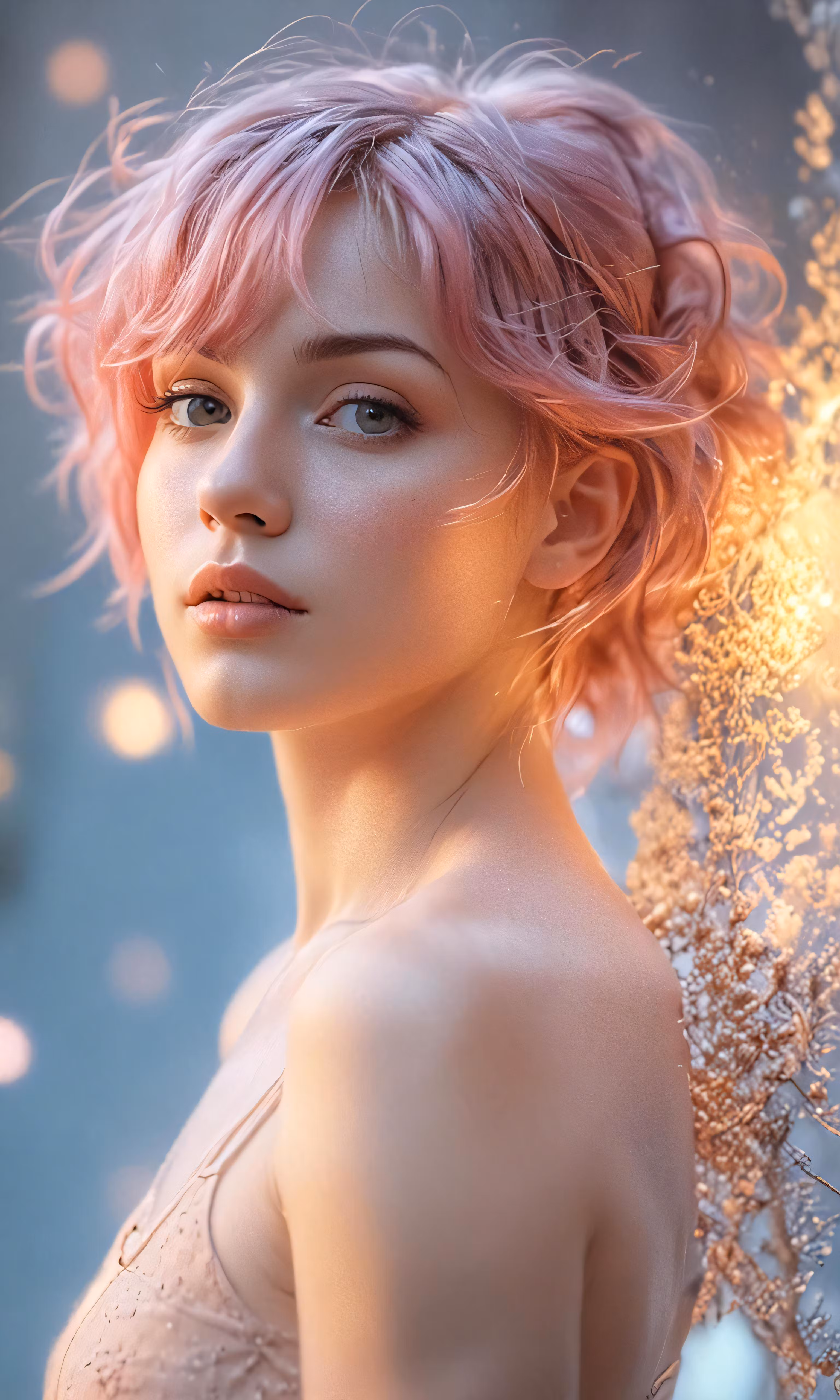 High resolution picture, free to use, a pretty woman with pink hair poses for a photo