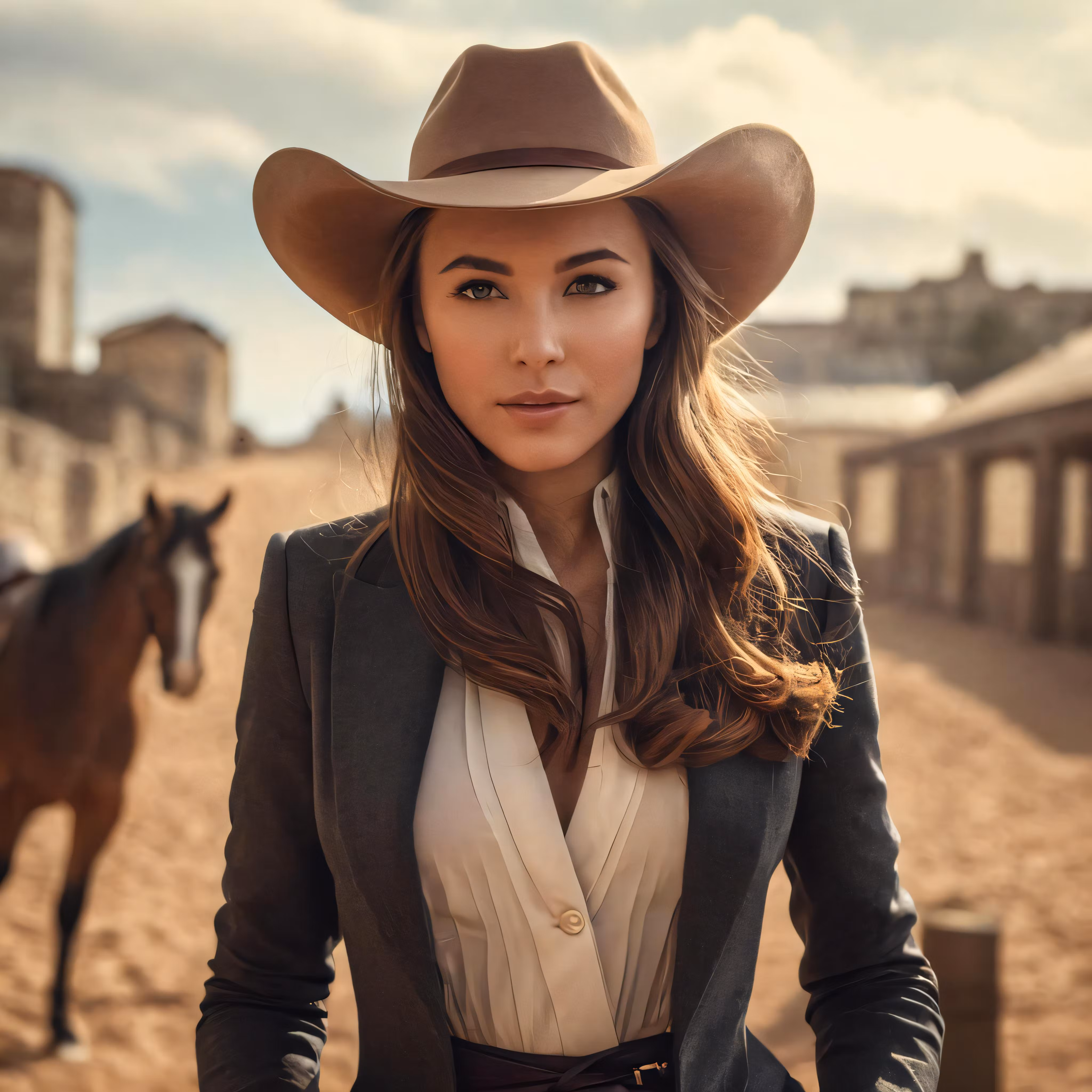 High resolution picture, free to use, a pretty young lady wearing a western style outfit