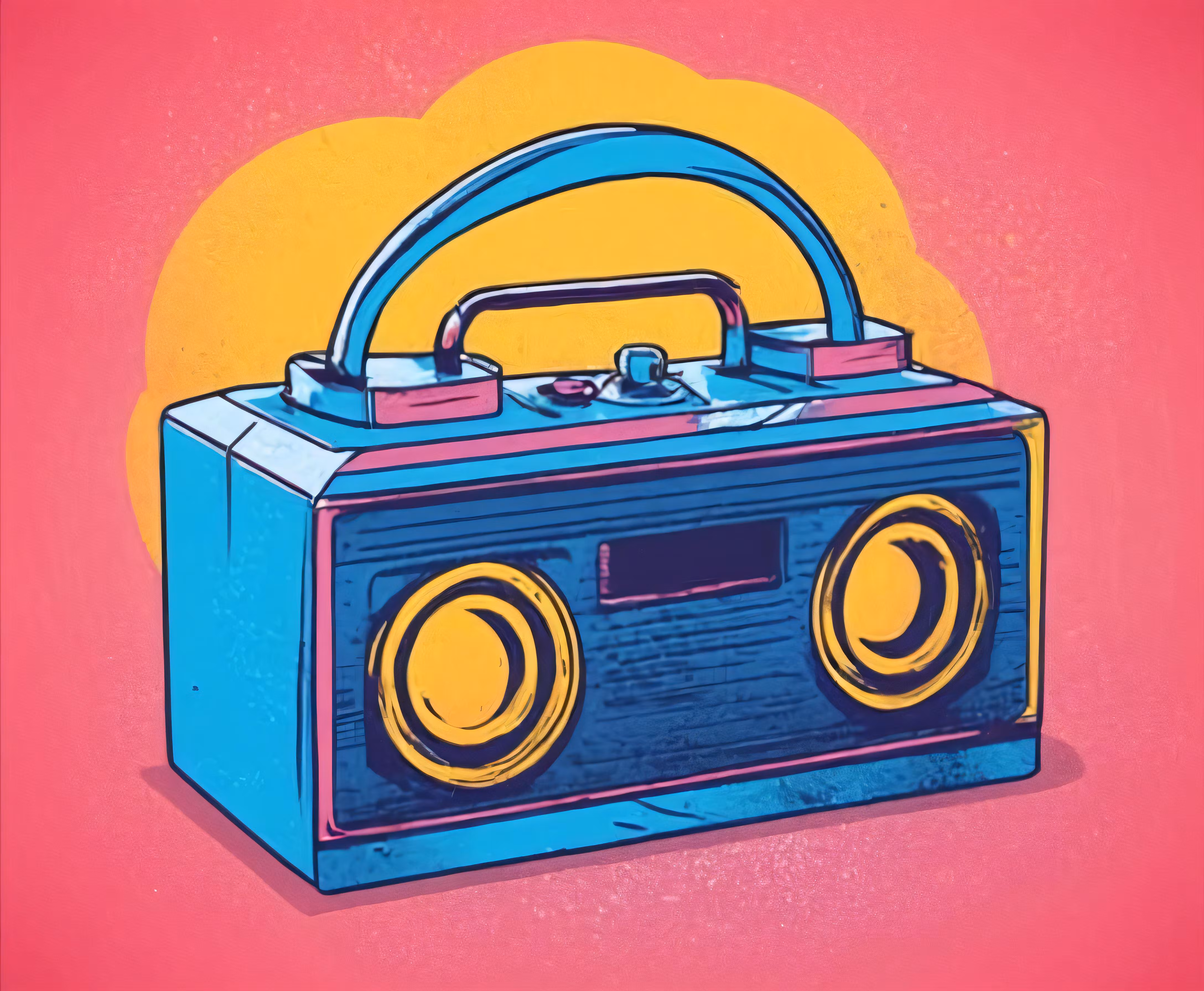 High resolution picture, free to use, a radio boombox is seen with colorful background