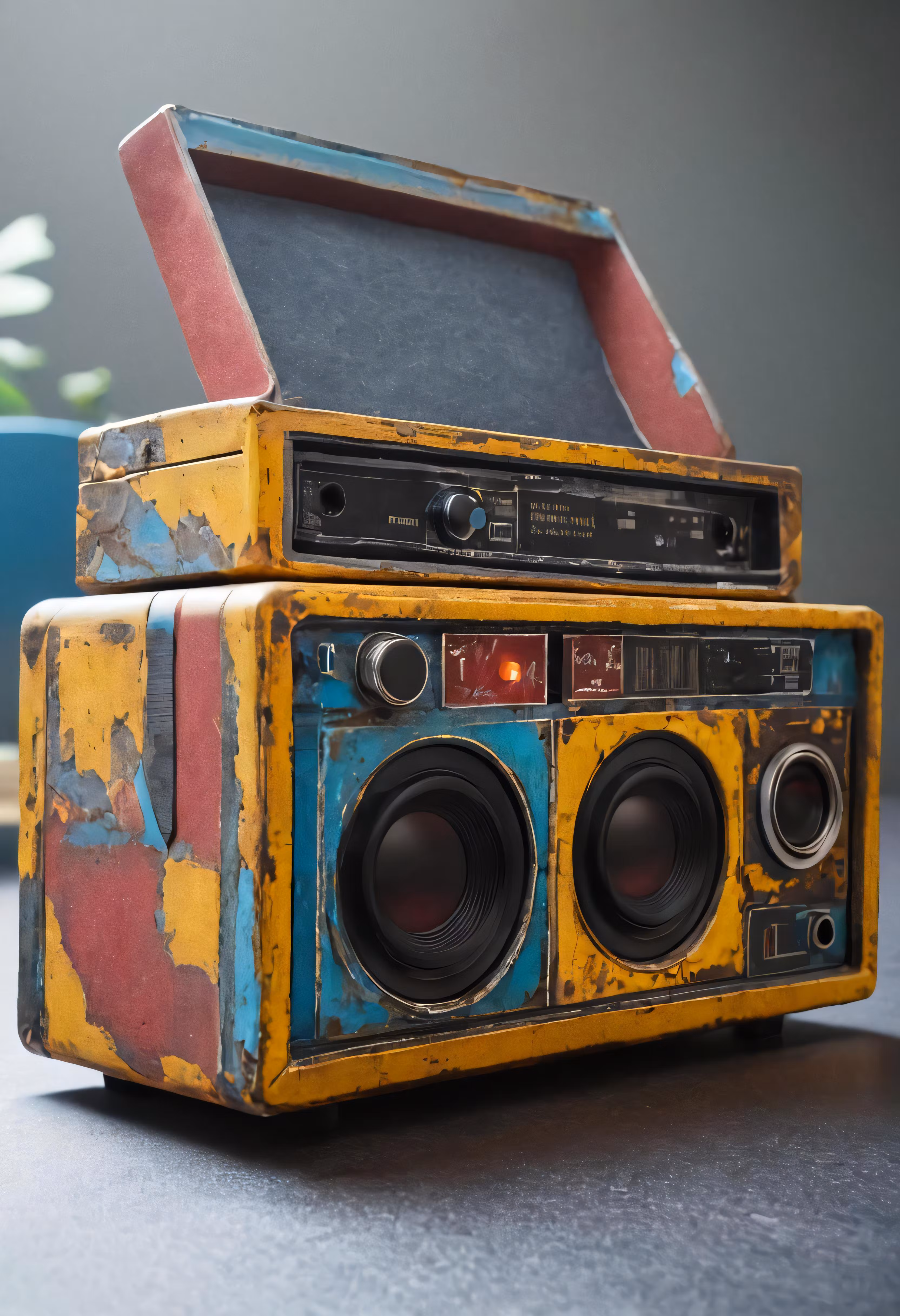 High resolution picture, free to use, a radio sitting on top of a wooden table