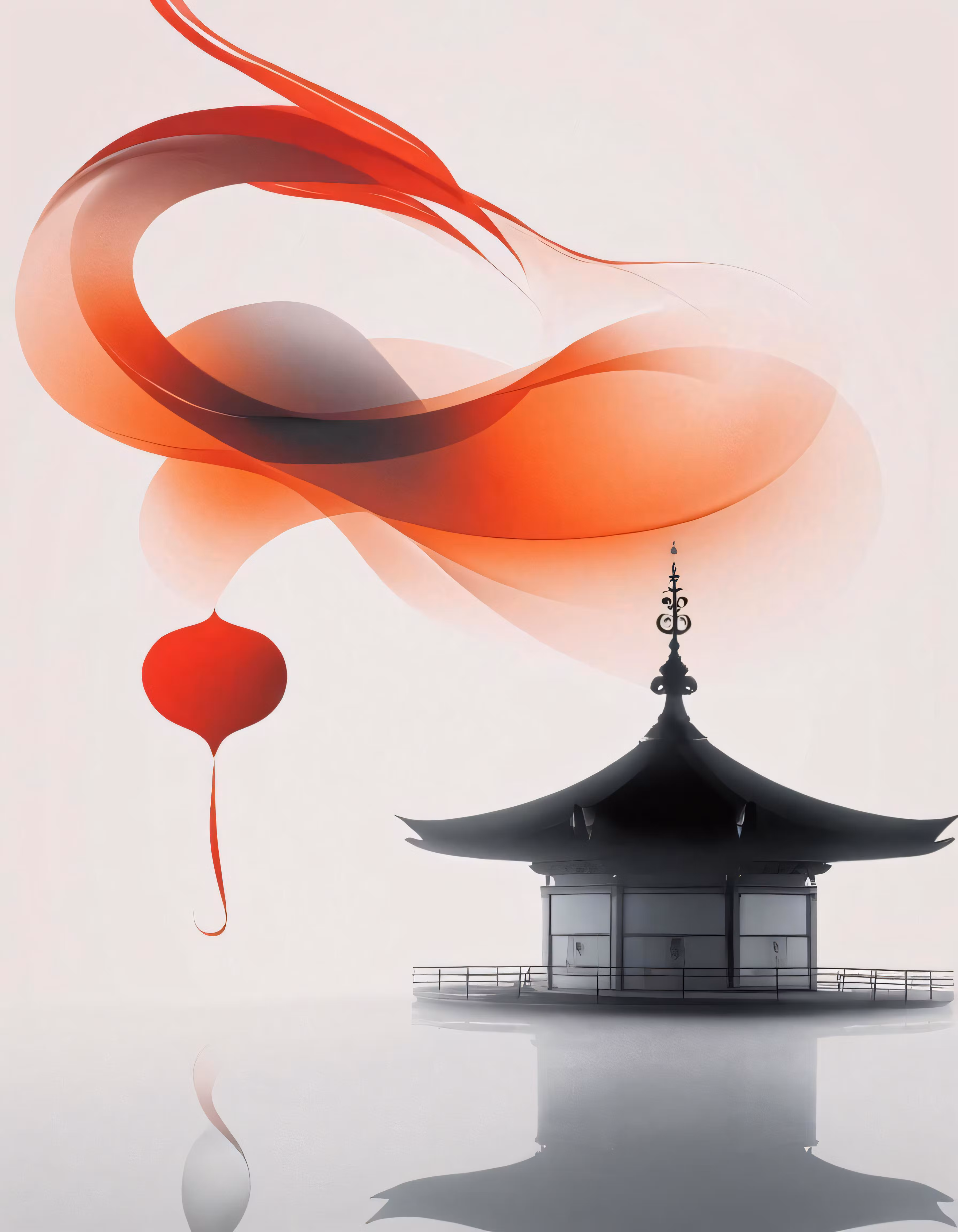 High resolution picture, free to use, a red and white illustration with water waves on top of a black building