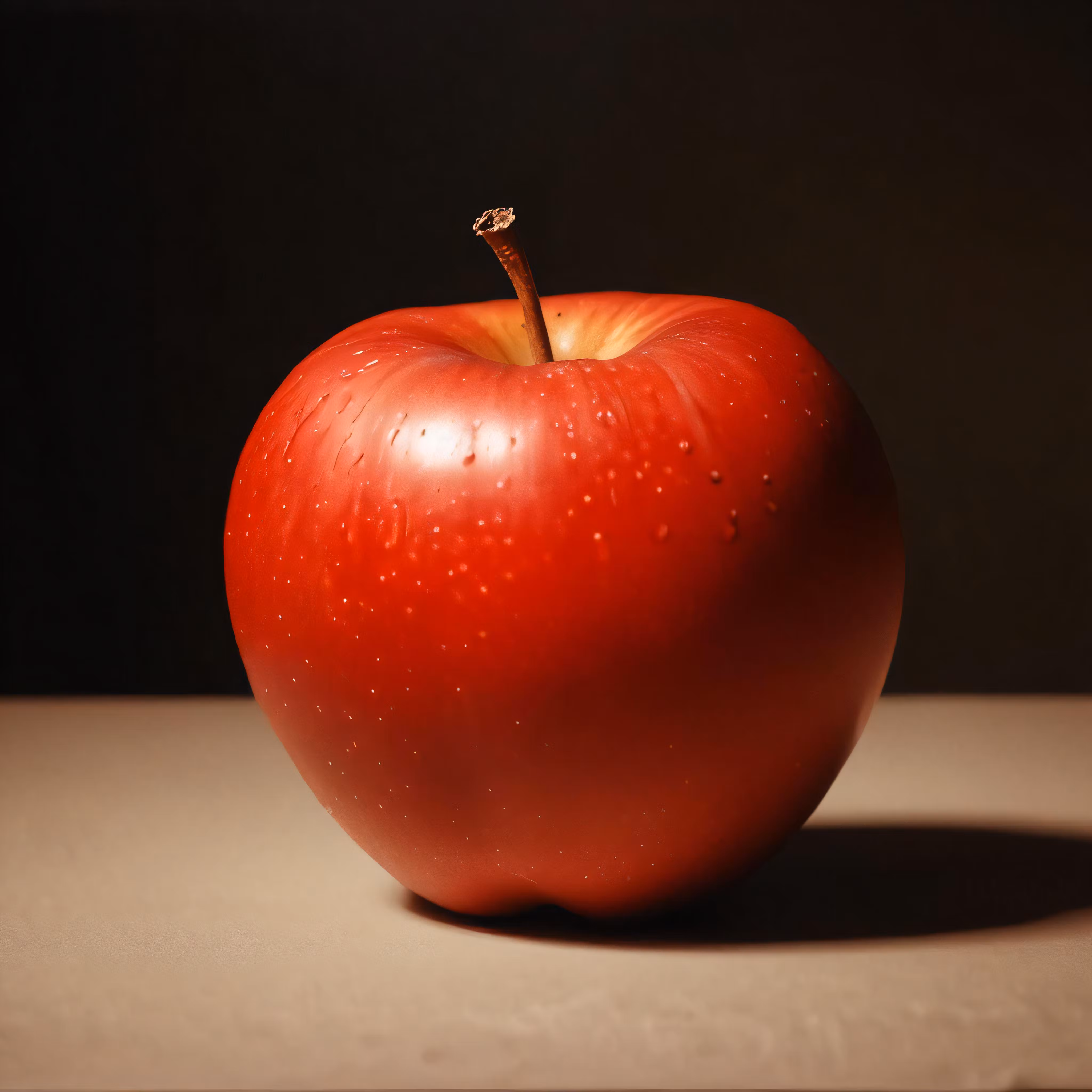 High resolution picture, free to use, a red apple sits in the sun, with light reflecting off it