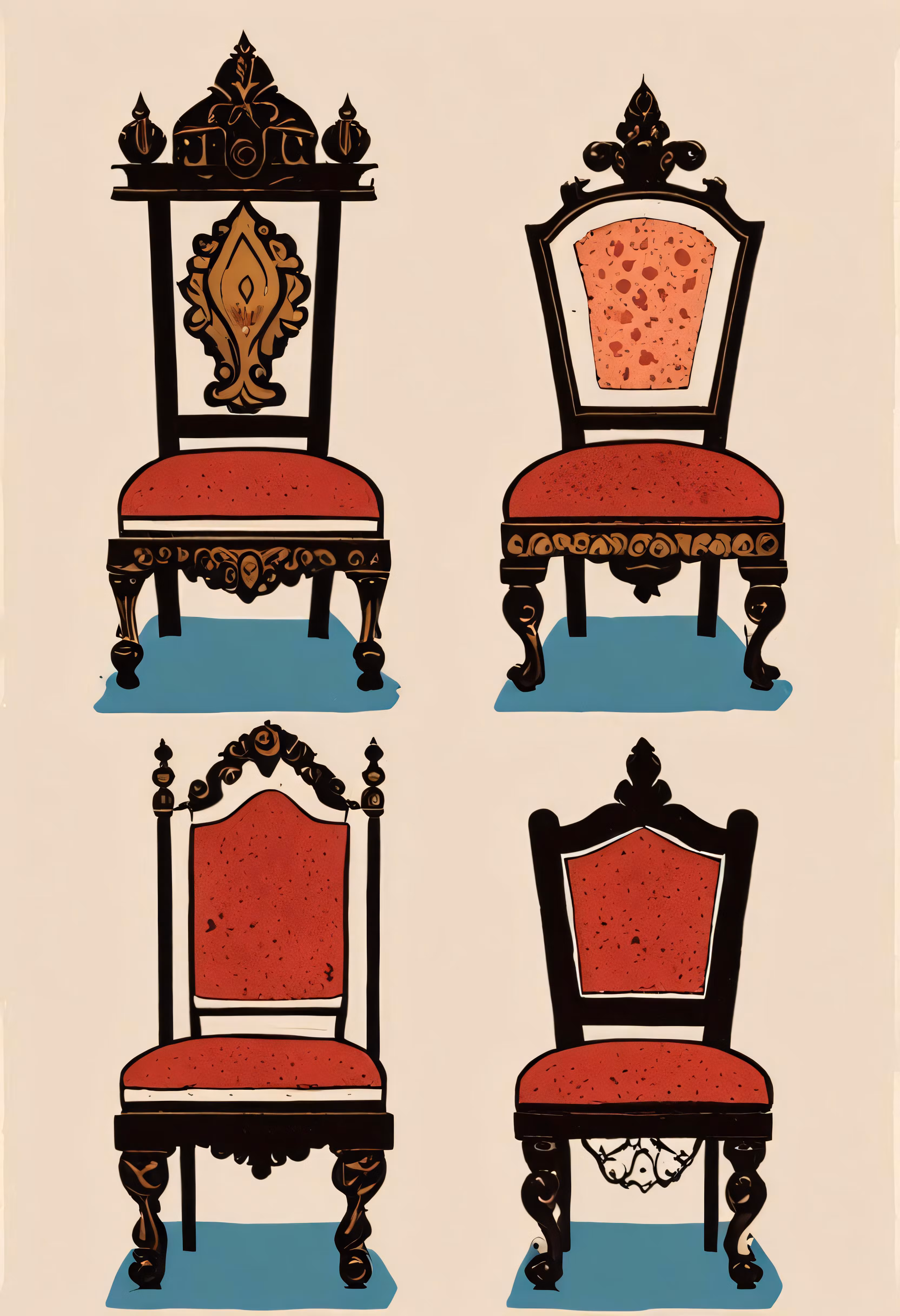High resolution picture, free to use, a red chair with a black and gold design on the back