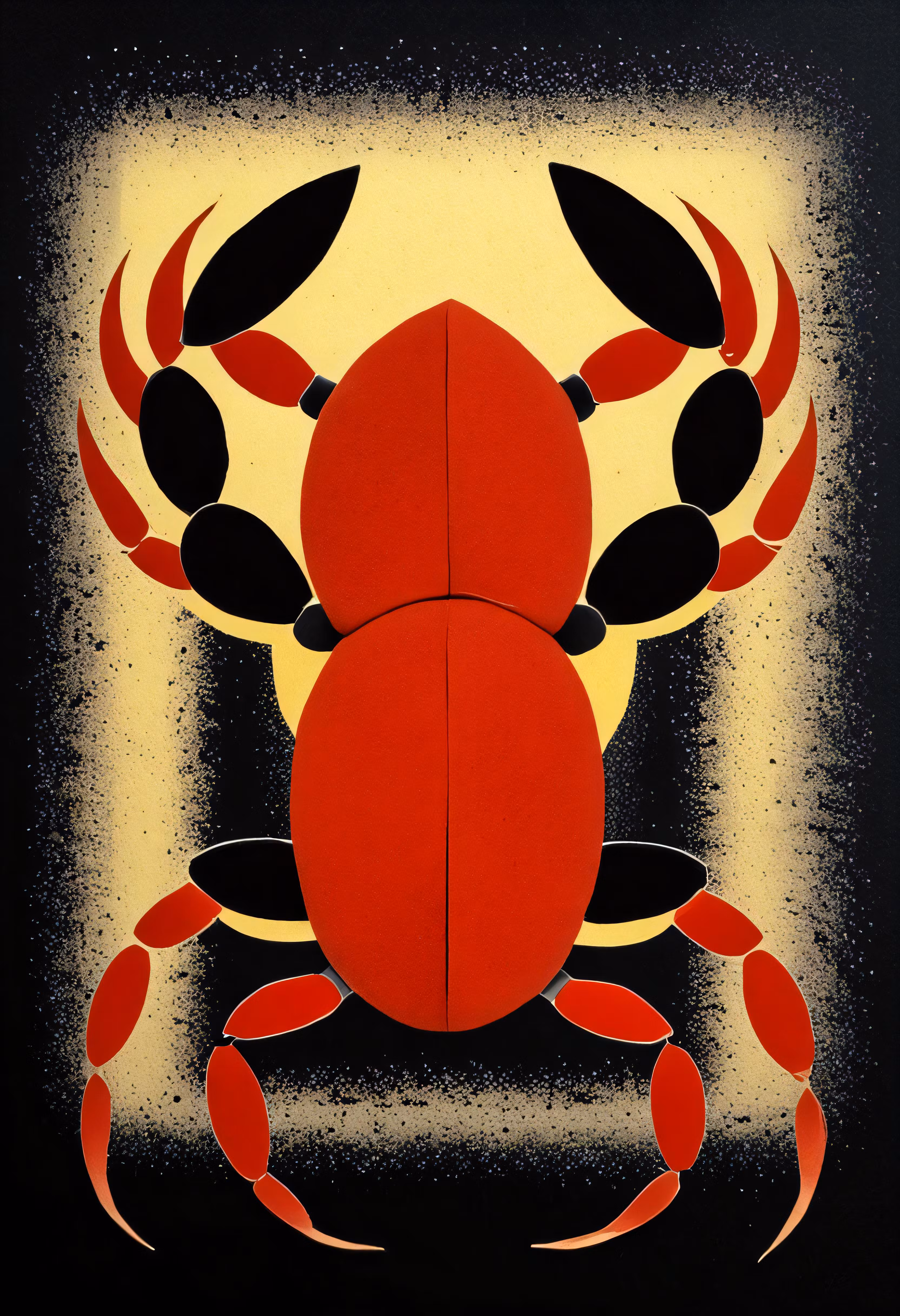 High resolution picture, free to use, a red crab sits in front of a yellow sky