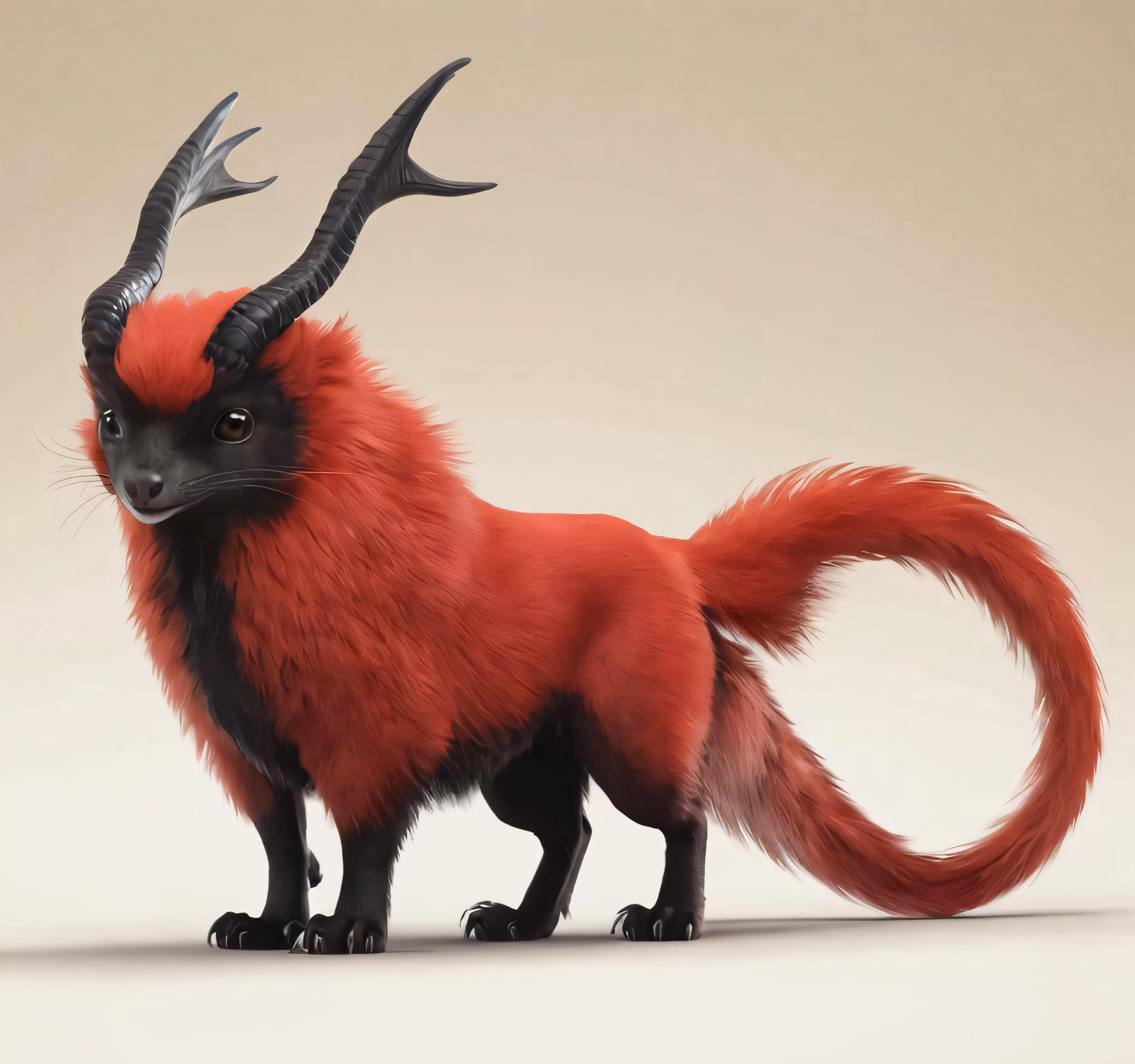 High resolution picture, free to use, a red furry animal with horns and horns on its head