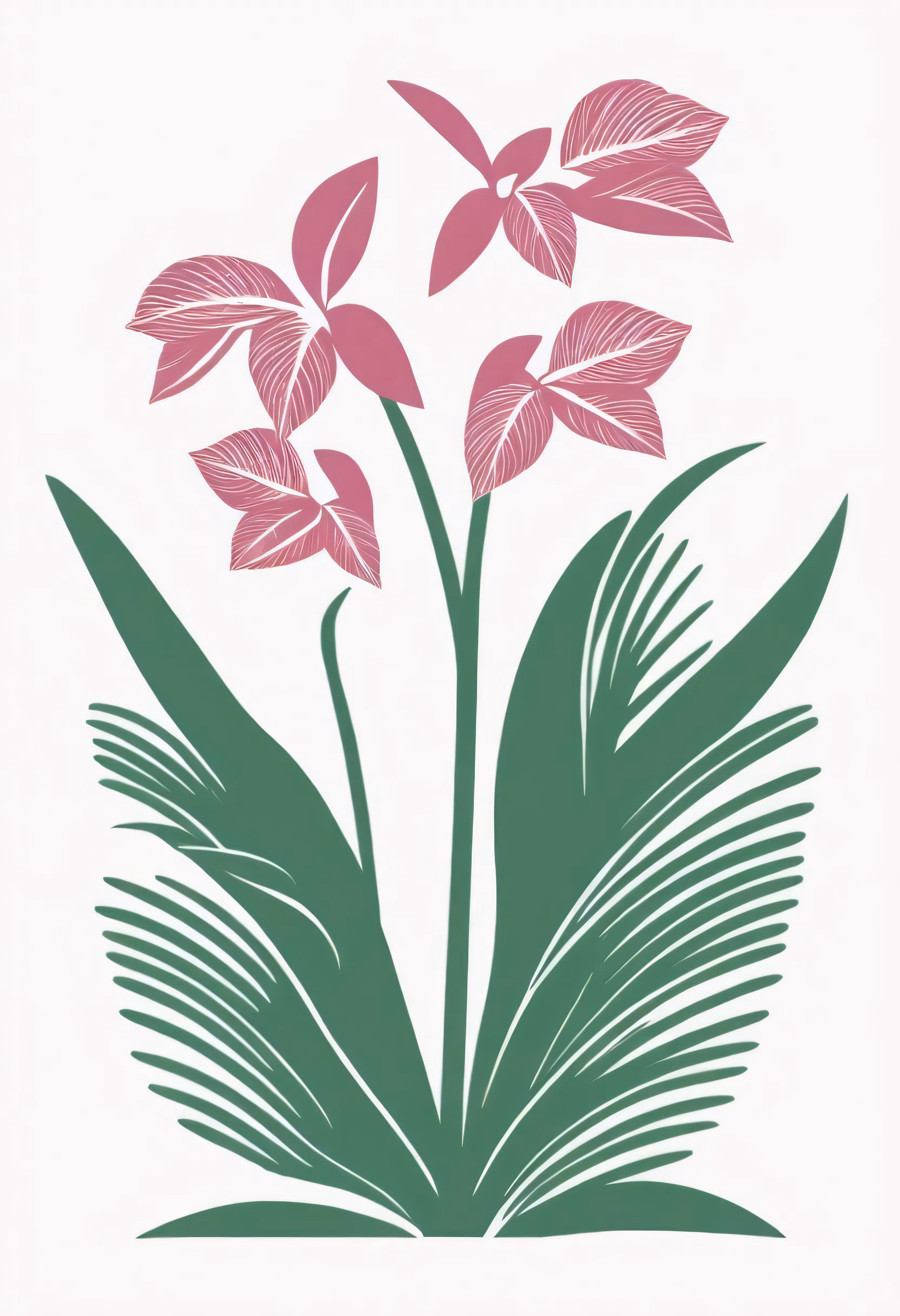 High resolution picture, free to use, a red orchid is growing in front of green leaves
