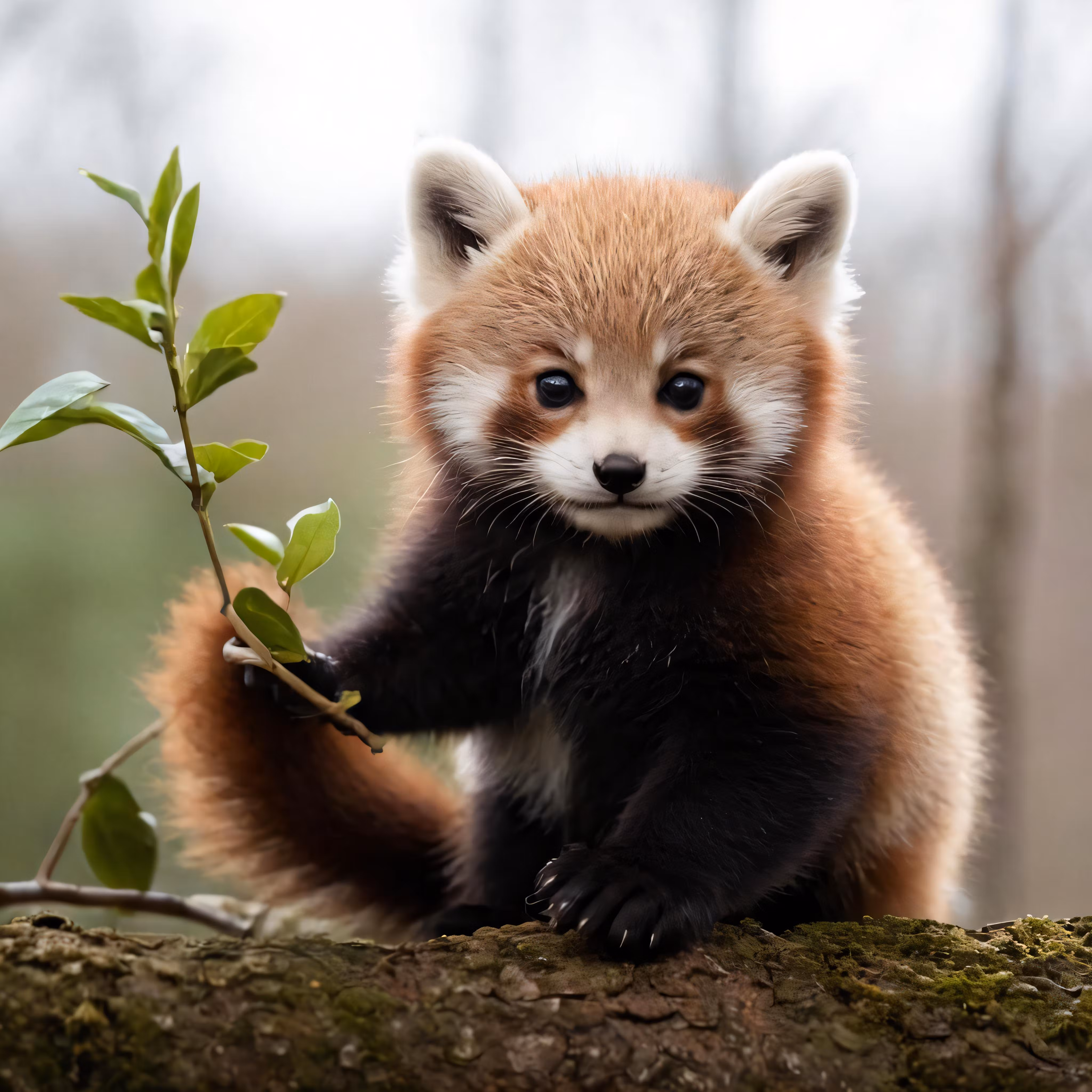 High resolution picture, free to use, a red panda cub holding a branch on top of a tree