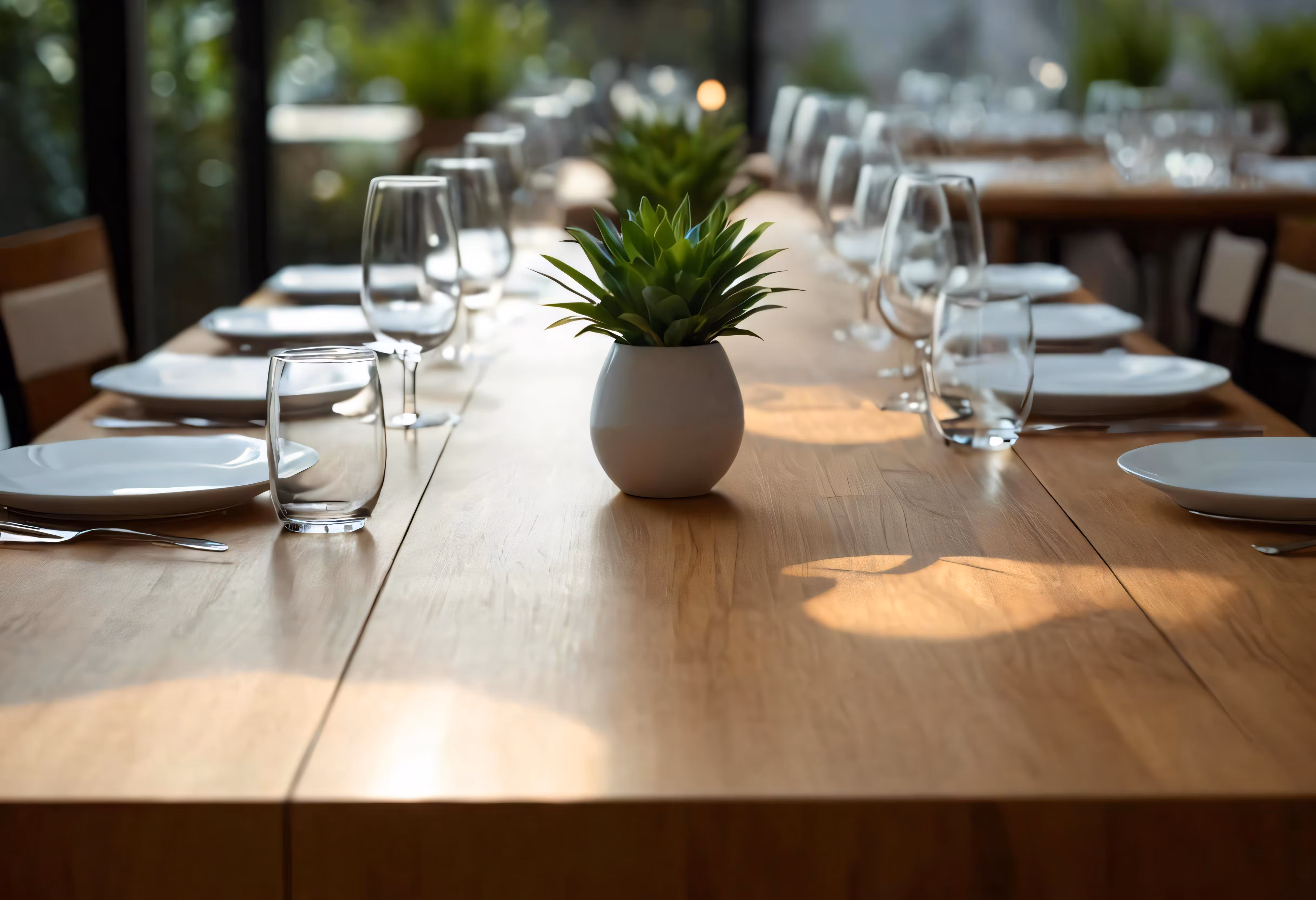 High resolution picture, free to use, a restaurant table set up for an evening meal
